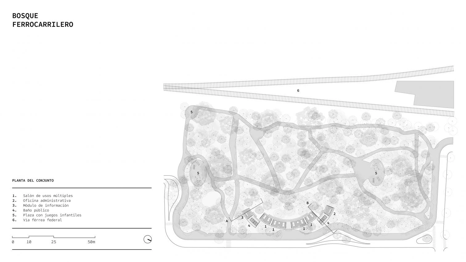 Under the auspices of SEDATU (Ministry of Agrarian, Territorial, and Urban Development), the project respectfully integrates architecture into the surrounding nature, preserving the general layout of the forest with its endemic flora. Paths formed by passers-by over decades are paved, leading to pavilions positioned between preexisting clearings in the woods. They provide public toilets, office spaces, and four multipurpose rooms envisioned for environmental and artistic workshops, sports classes, and community meetings.