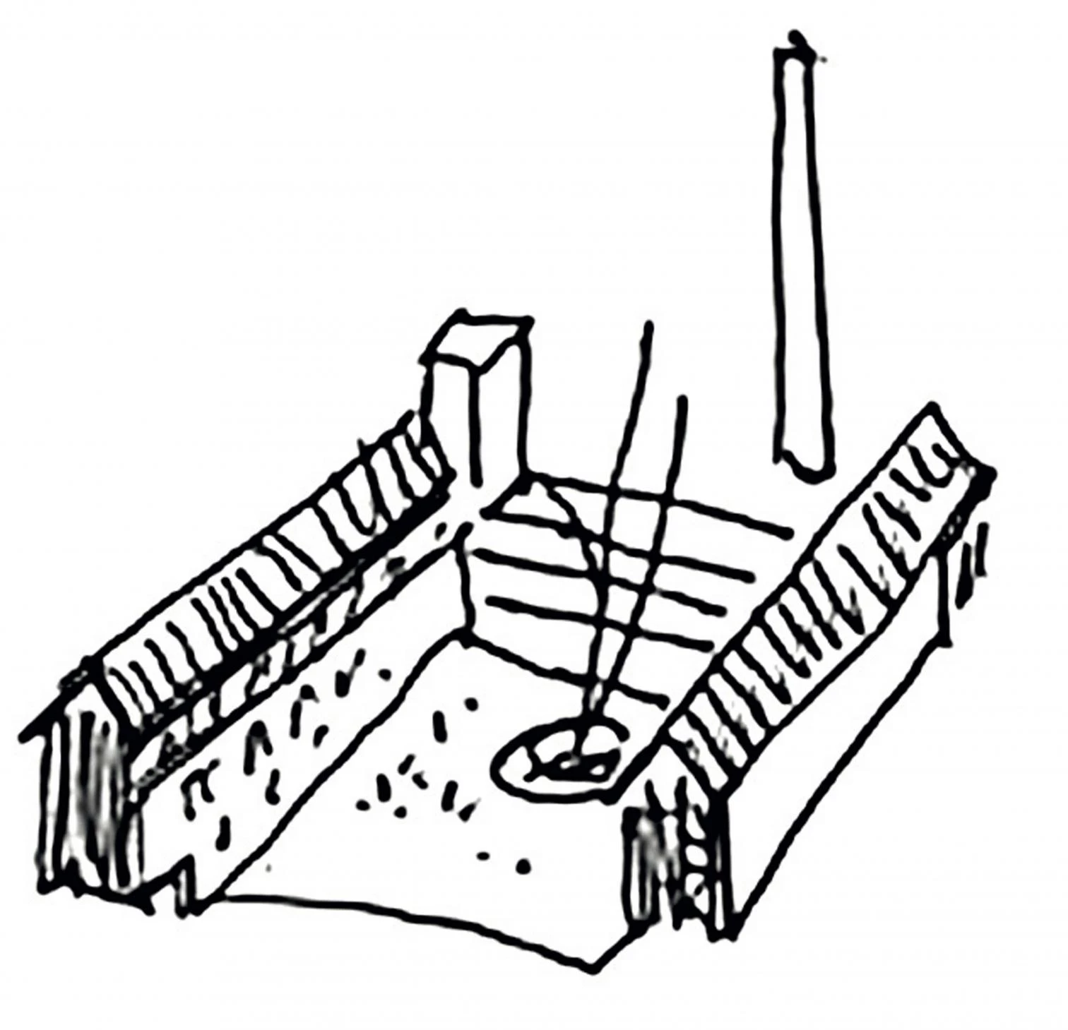 A visit begins at the site’s highest level and descends along a continuous path. The garden marks the museum level (a meter and a half below that of the Cerdà scheme), rising at the edges to hide wheeled traffic. Ivy produces a melancholic decadent image contrasting with the fresh air of renovation.