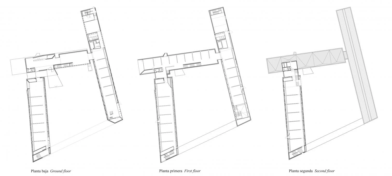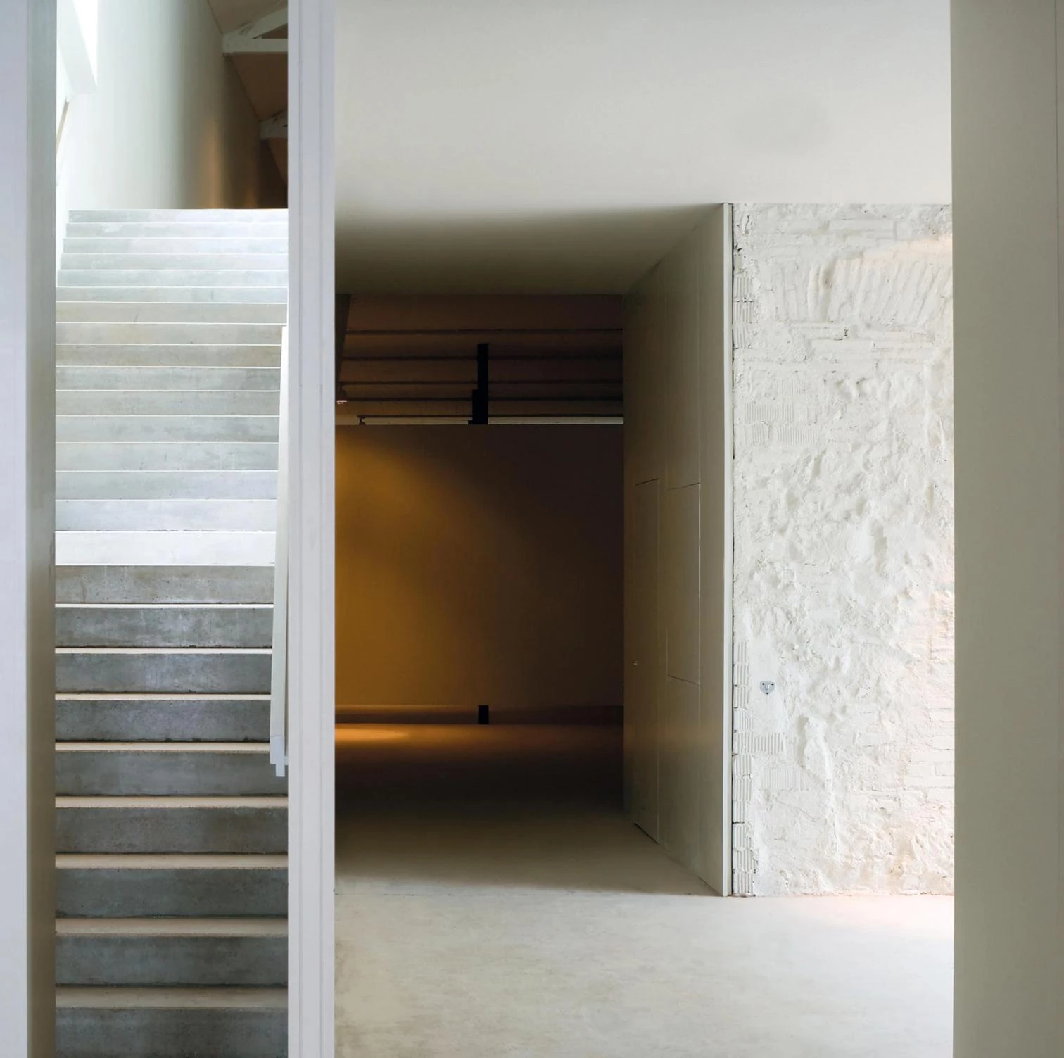 The project for the museum of the Vila Casas Foundation does not act cosmetically on the building’s deteriorated skin, which provides a contrast with the high technology on display around. It cauterizes historic wounds by consolidating the side facades, and makes a new volume connect the two old sheds, forming a court that is the museum foyer. The entire operation is executed with rough concrete. A gray paint layer protects the preexisting walls, preserving their textures (brick, stone, arches, old scars of windows, etc.) and creating a contemporary collage of finishes, openings and fillings that speaks of previous refurbishments.
