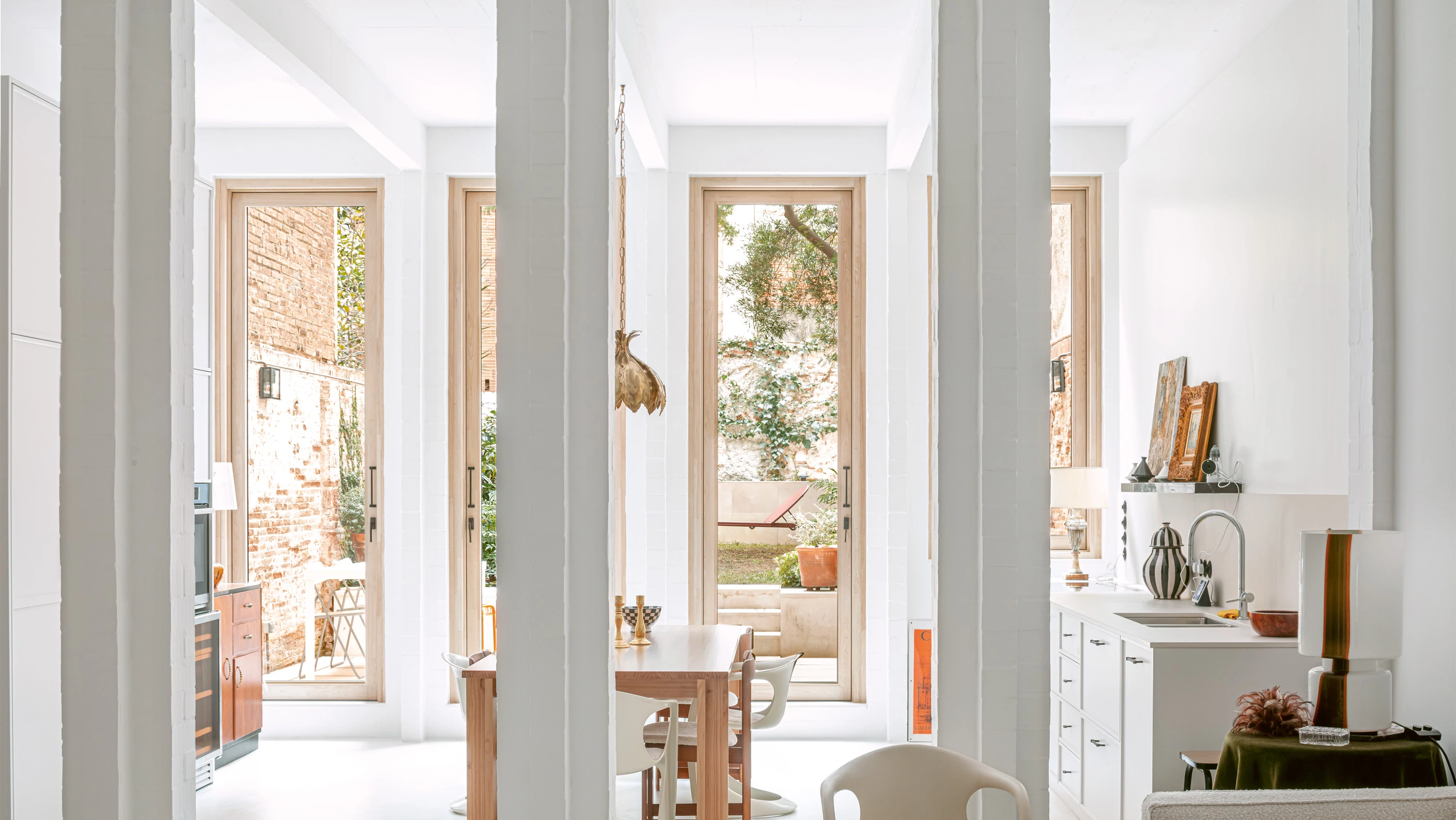 HarquitectesThe project is a single-family house between partition walls in the dense historic center of Barcelona. The proposal is defined by two elemental decisions, on one hand, to place the vertical communication on the main facade and compartmentalize the house only in section. These decisions allow the staircase space to function as a patio – favoring natural ventilation and avoiding any noise or disturbances from the street – and allow the floors to be practically diaphanous, assigning a user profile to each of the three levels. The ground floor uses the volume of the existing construction and, since it has a larger area than the rest, it contains all the shared social areas of the family. The first floor is used for the children’s room, play and study, and the upper floor for the rest and work of the parents. To adjust the diverse uses without losing the clarity of the space, the conventional bearing wall parallel to the facade dissolves in a dense grid of cross-shaped brick pillars that defines the main attributes of the space and orders the uses of the floor and even of the facades. The horizontal slabs transmit the forces to the pillars through equally slender ribs…[+][+]
