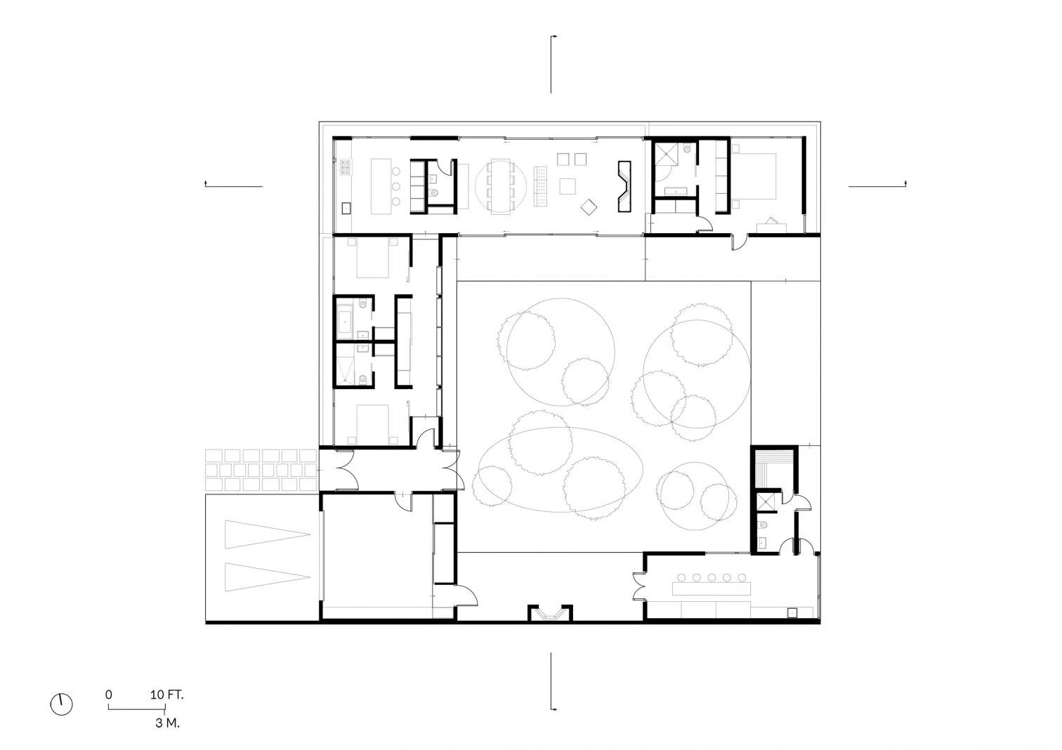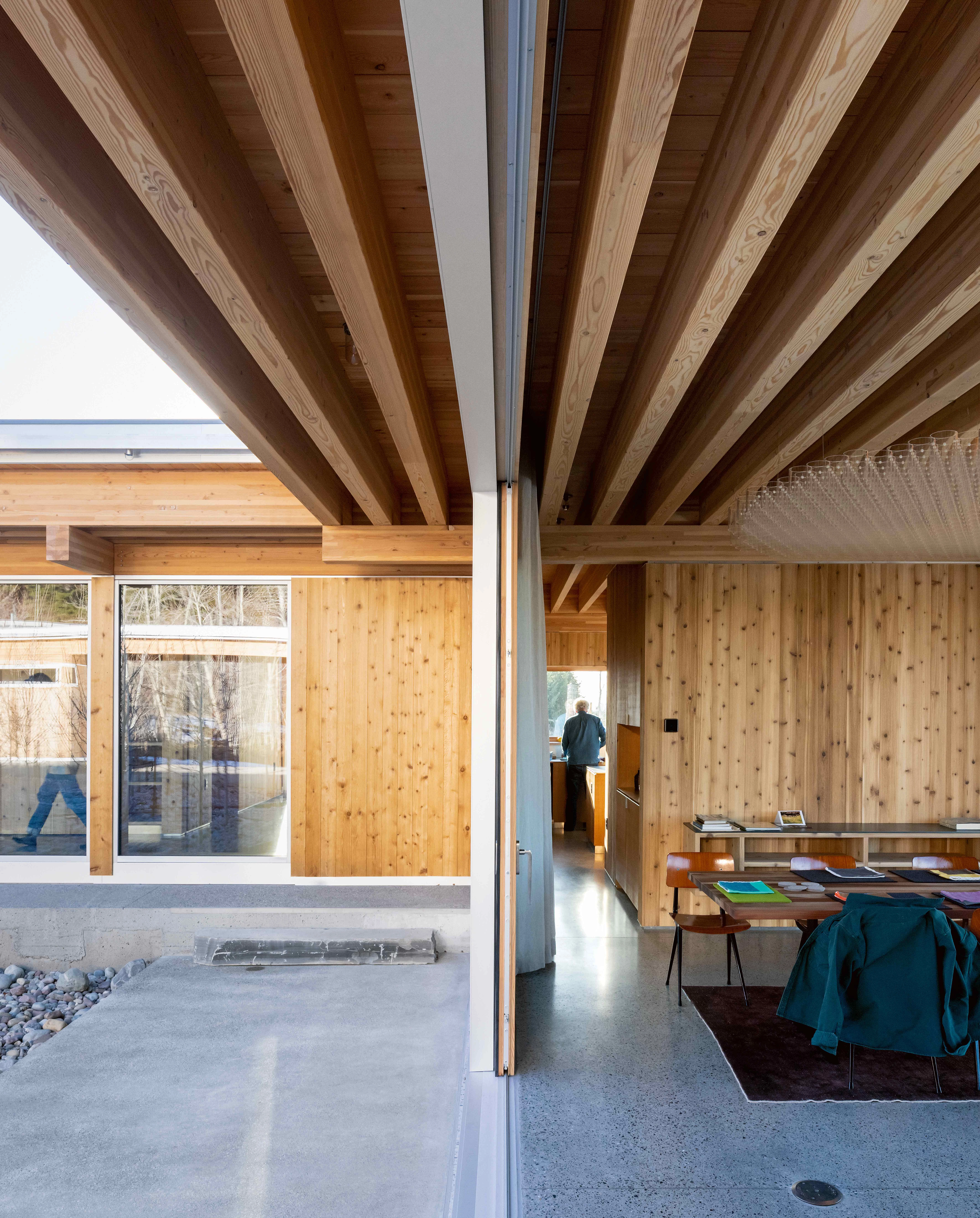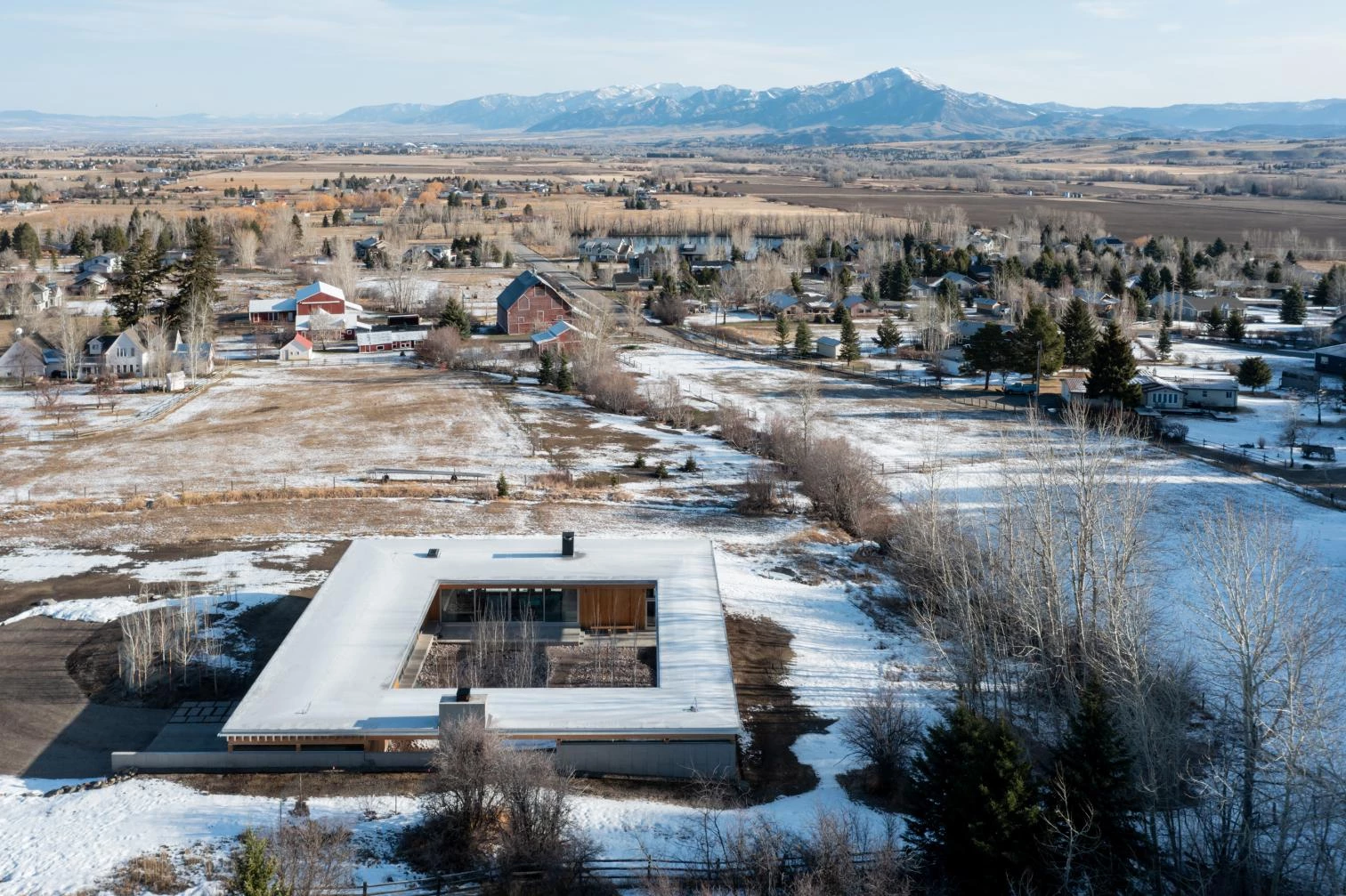 The vast expanse of land around Bozeman – a city in the foothills of the Rocky Mountains, not far from Yellowstone National Park – has been seen by many, and even more so with the pandemic, as an ideal place to escape from the madding crowd and enjoy the benefits of remote working. In a region of short summers and extreme winters, compact constructions are the norm, so a house with a courtyard may seem out of place. But this is the solution adopted by the architects, also the future inhabitants, to open up the building in different directions and ensure views of the mountains without sacrificing the privacy provided by the central garden as a counterpoint.