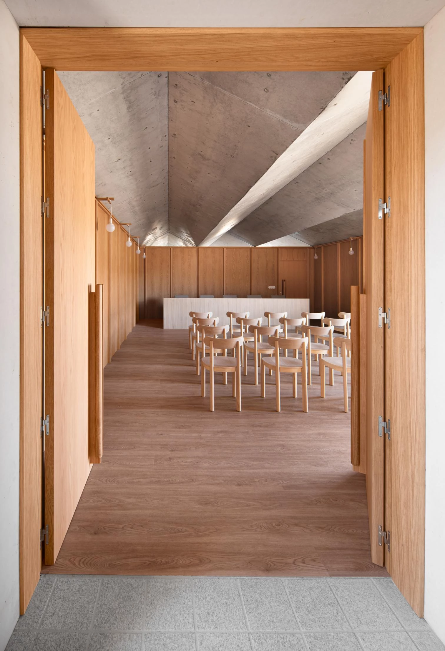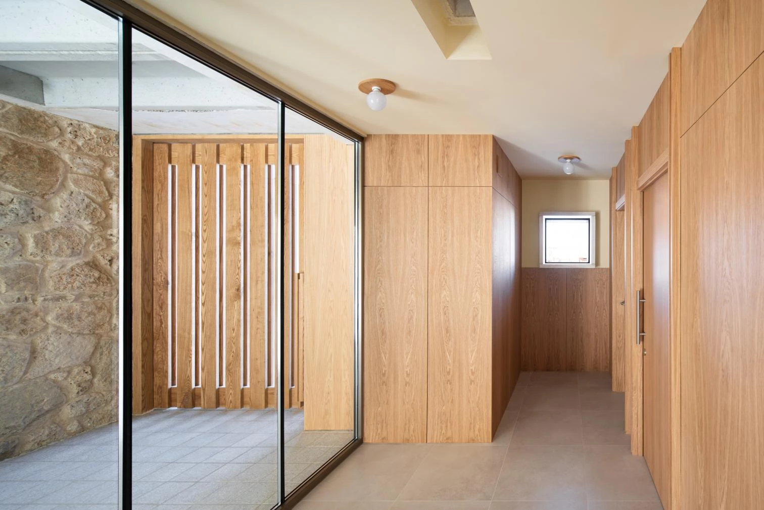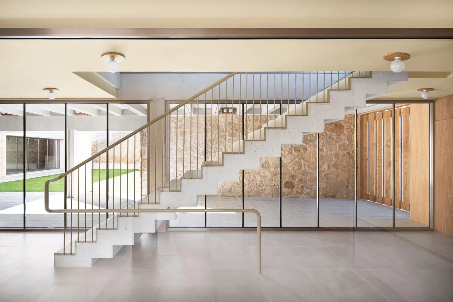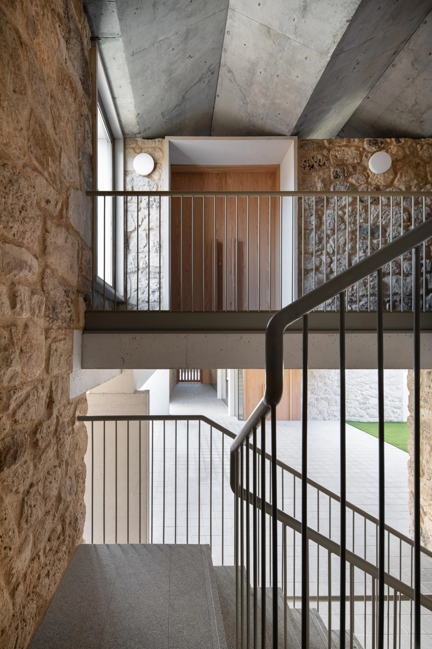 With just little more than 300 square meters roofed, the building is thought out like a mini-city. The interior routes are the streets – some covered, some arcaded – and a small intermediate square, and the doors to the different areas are open out to these. The main material used is local calcareous stone, which is complemented with wood and aggregate concrete in a language that fuses tradition and modernity.