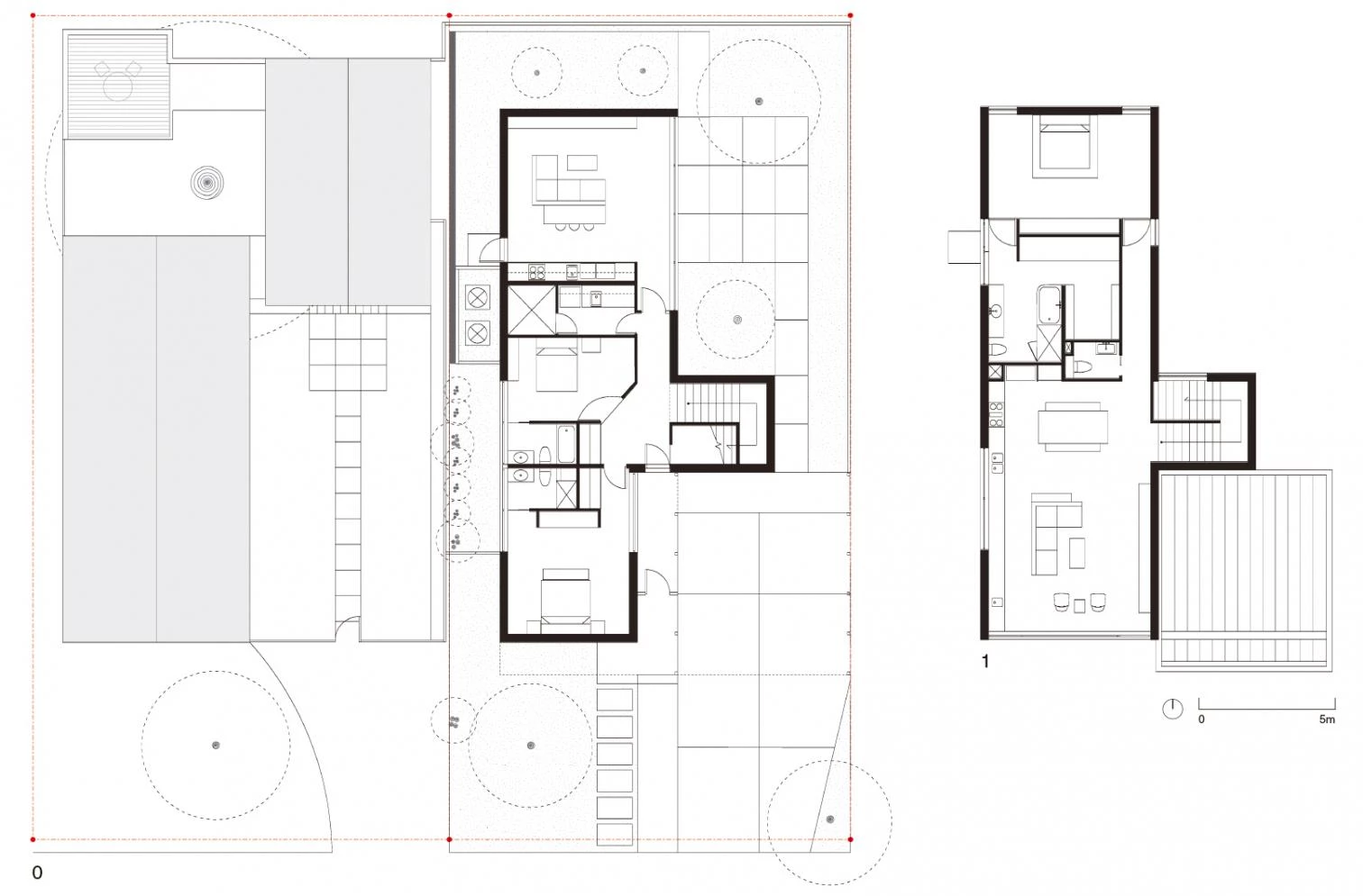 Terrazzo and stone flooring underline an essential materiality present in what is already a minimally detailed house. A trellis-like open carport interlocks with the solid street elevation to become an integral composition. The main entrance to the house is placed between these two contrasting material and spatial conditions.