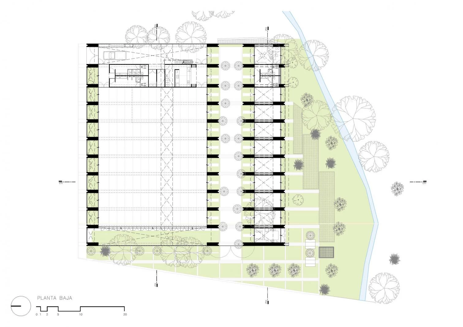 In turn the school rises with loadbearing walls and eight classrooms, paying special attention to acoustics so that different instruments can be played at the same time. There is also a café, besides bathrooms and offices. The pitch of the roof allows double-height spaces which keep the place cool by letting hot air rise.