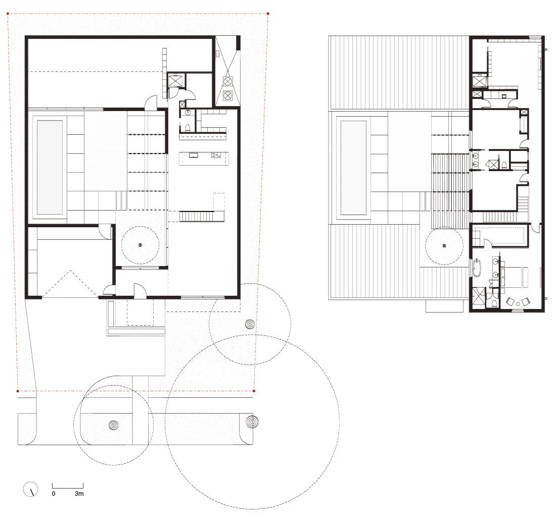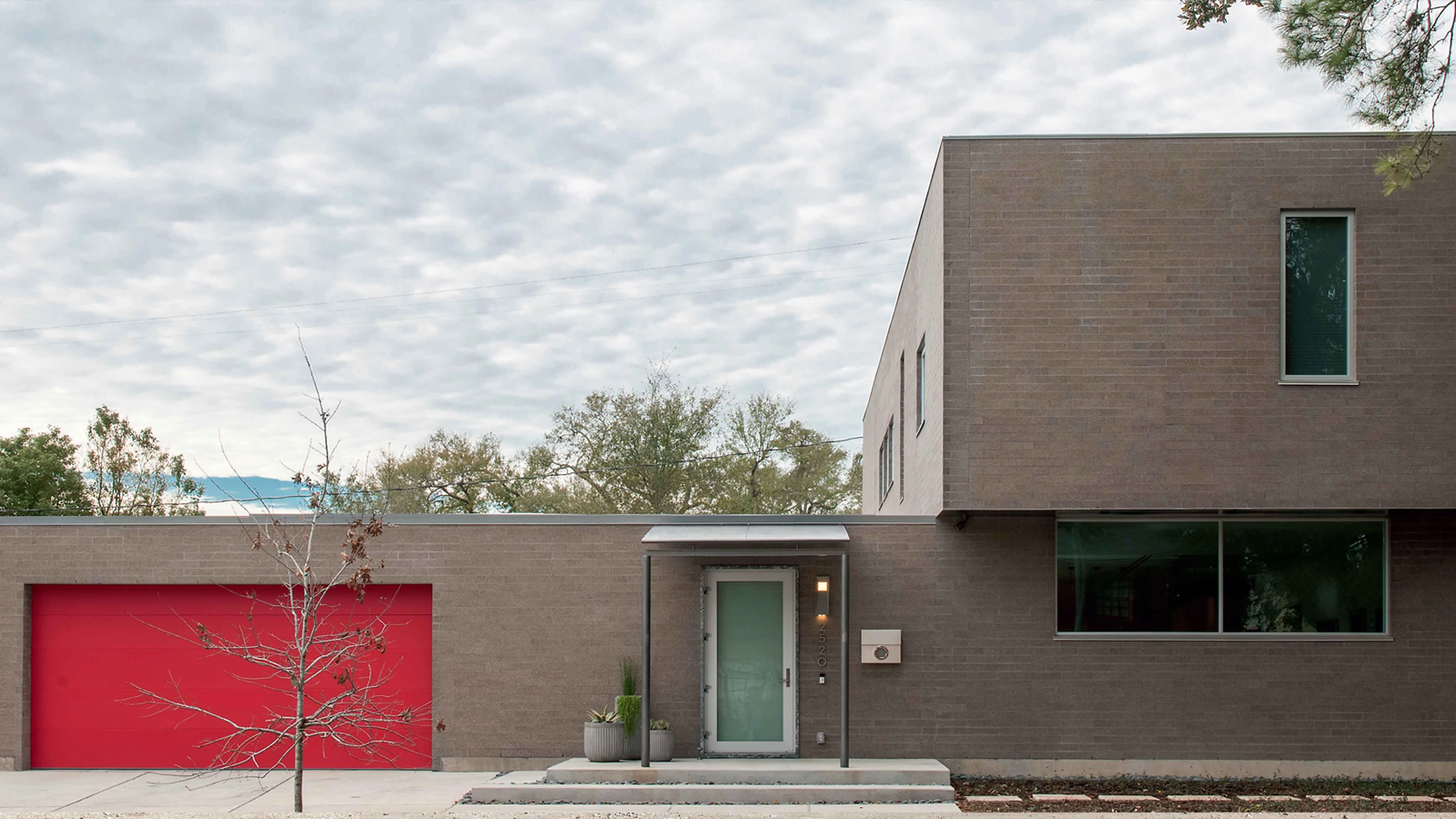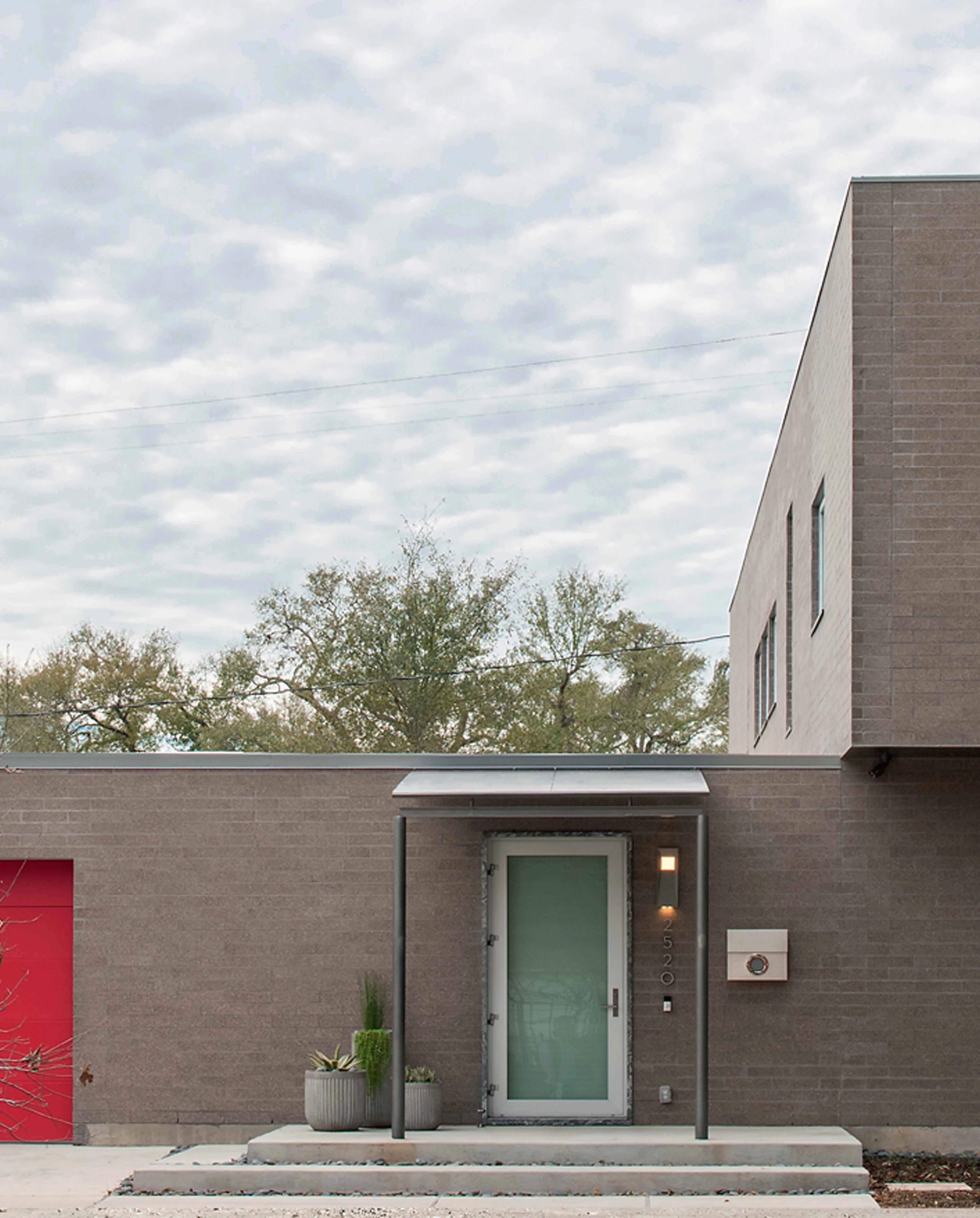 The 5,500 square foot courtyard house consists of three intersecting volumes: a single height garage and entry bar facing the street, and a two story structure oriented to the west to block the harsh Houston light. This volume is divided into two distinct sections: its ground floor comprises living, dining and kitchen spaces, while the second floor contains three bedrooms, laundry and a private library. A single-story photography studio at the back of the property interlocks with a high wall to the east to define the central courtyard.