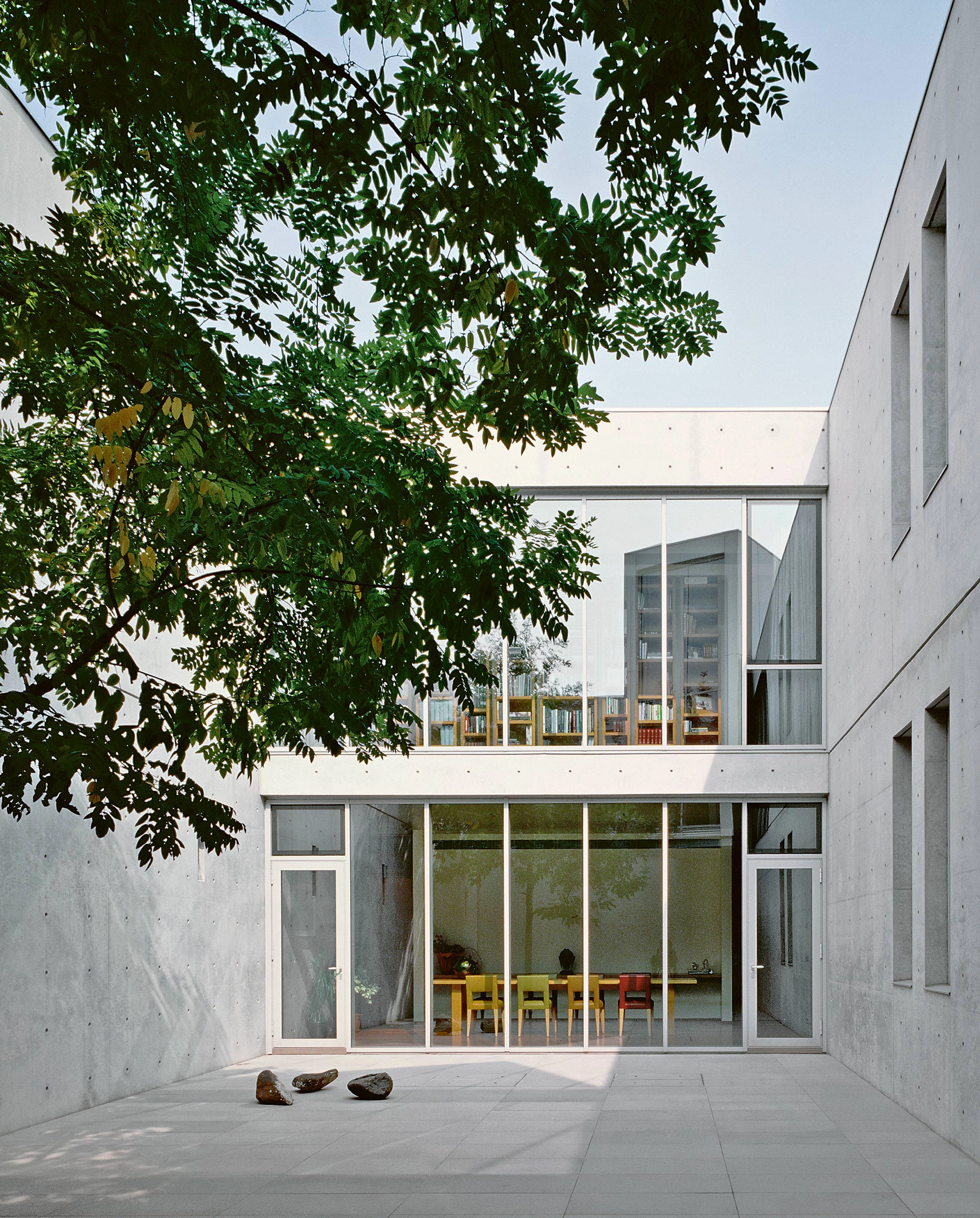 Despite the simplicity of its floor plan, based on 7.2-meter grids, the interior is a labyrinthine space under ground, filled with diverse spatial experiences unexpected in daily life, within an invisible structure. Inside this rigid framework is a spatial sequence full of variety, realized through architectural manipulations focusing on natural light, such as the skylight cut open above the head, various types of inner courts that invert internal and external spaces, and change of floor levels...[+]