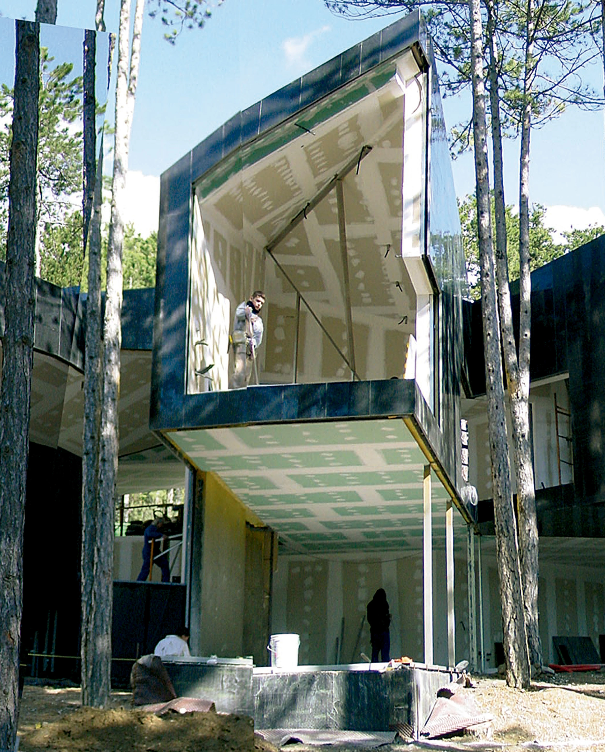La traza volumétrica del edificio se adapta al bosque existente, dejando que sean los troncos los que definan la geometría de la planta. Después se estudian las posibilidades que ofrece la configuración resultante, buscando soluciones particulares que hagan factibles cada uno de los llamados ‘brazos especializados’... [+]