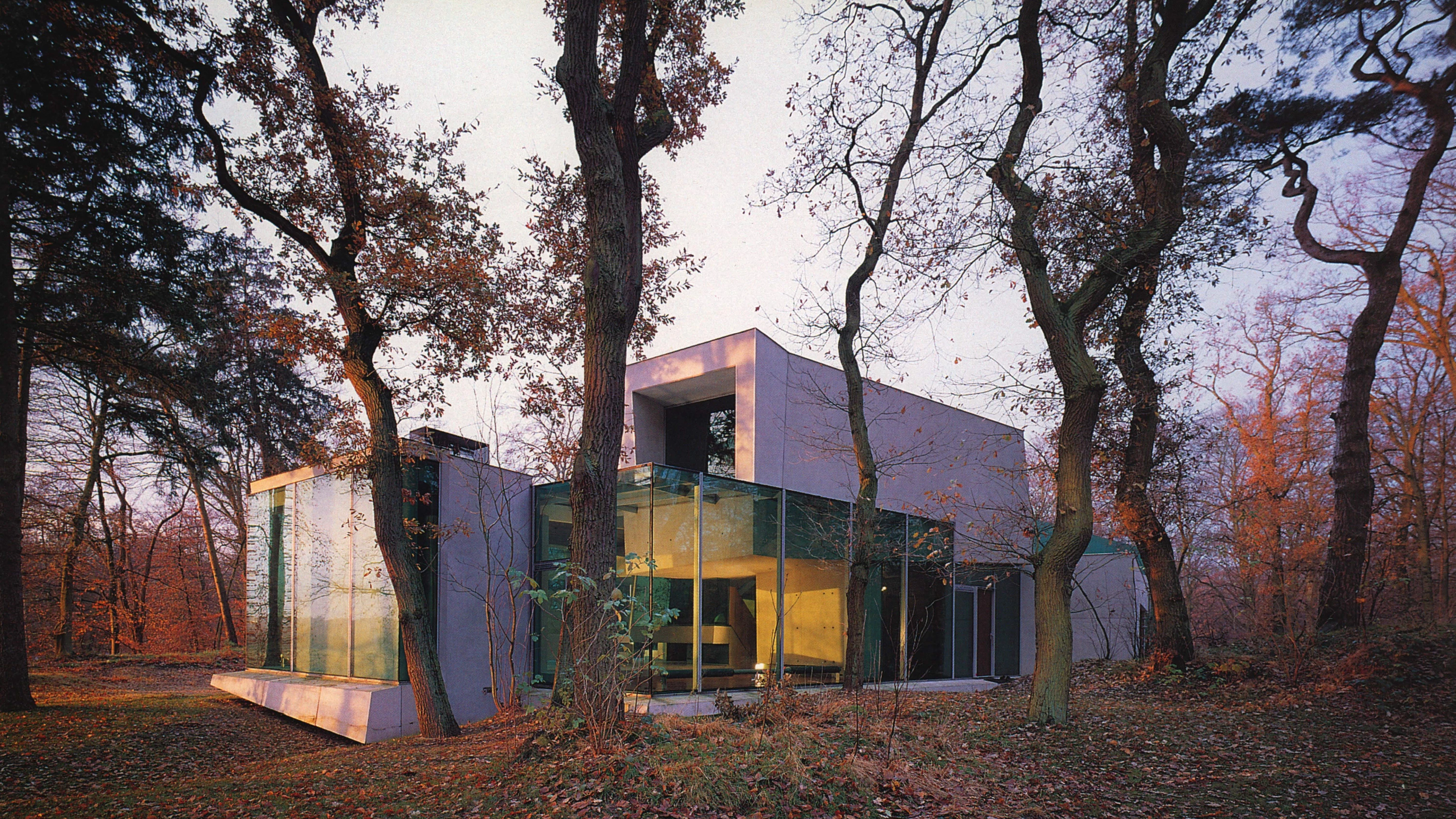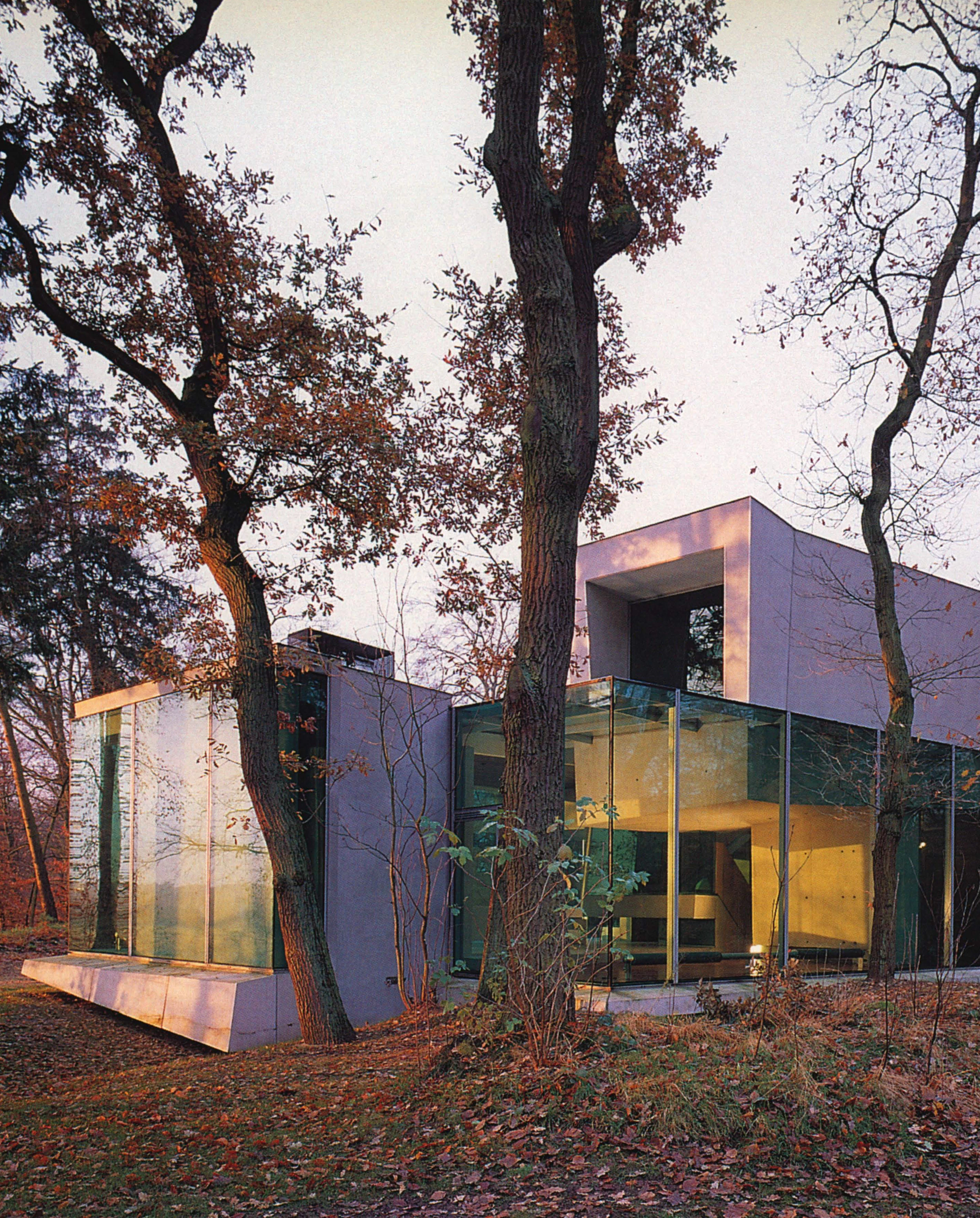 Pero aparte del tiempo y el espacio, el proyecto contempla la importancia de la relación que se establece entre el lugar y el edificio. La finca se ubica en una zona residencial privilegiada a las afueras de Amsterdam, donde predominan extensas parcelas de terreno en medio de bosques, colinas y praderas. Este entorno resulta tan poco habitual en el paisaje holandés como la respuesta que se da al programa.