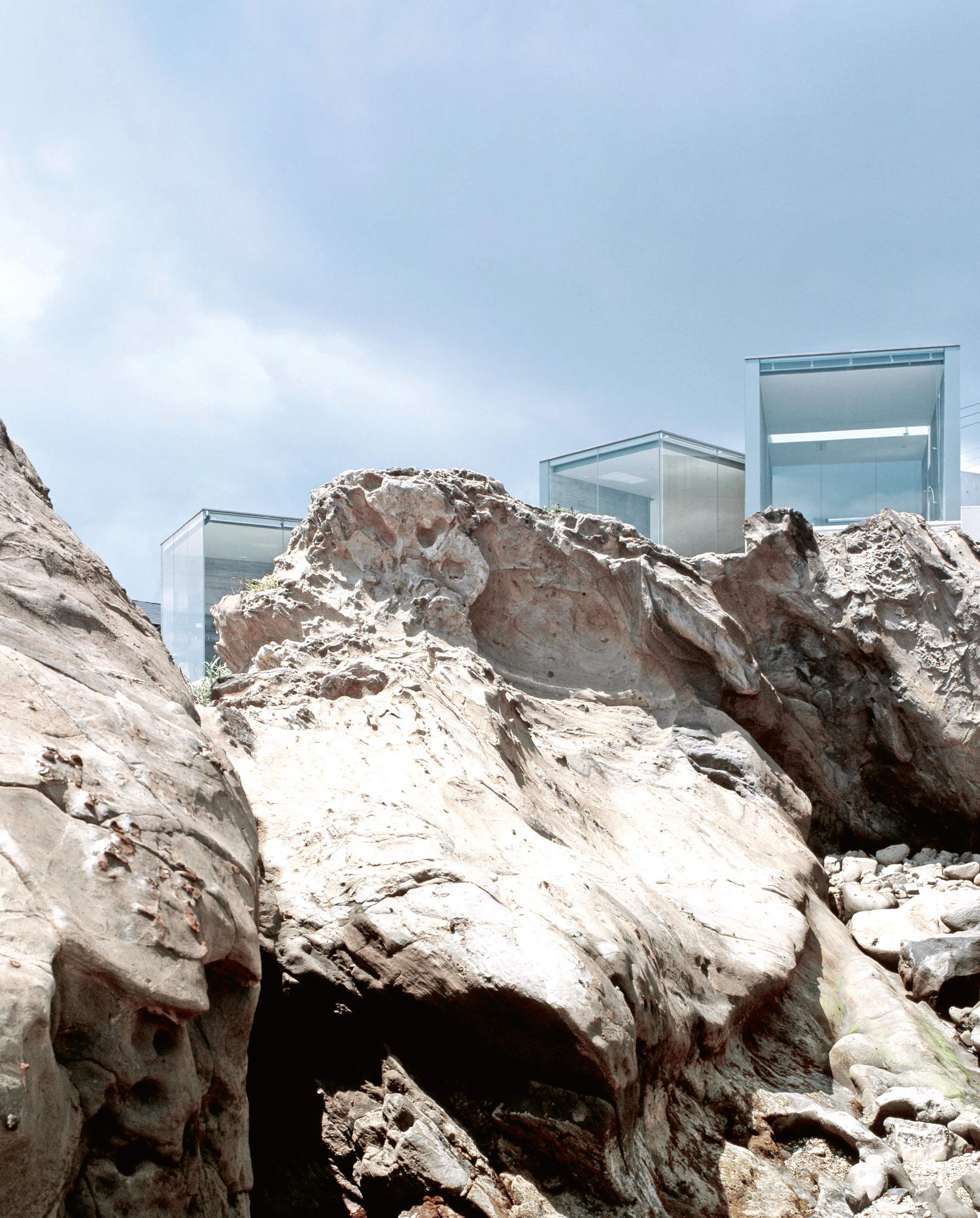 Facing the Pacific Ocean, on a rocky stretch southeast of Tokyo, House O twists to face the sea and frame different views. The uniqueness of its floor plan, conceived as the branches of a tree, is its spatial continuity. All the spaces – entrance, living room, dining room, kitchen, bedroom, Japanese style room, studio, and bathroom – are arranged without partitions.