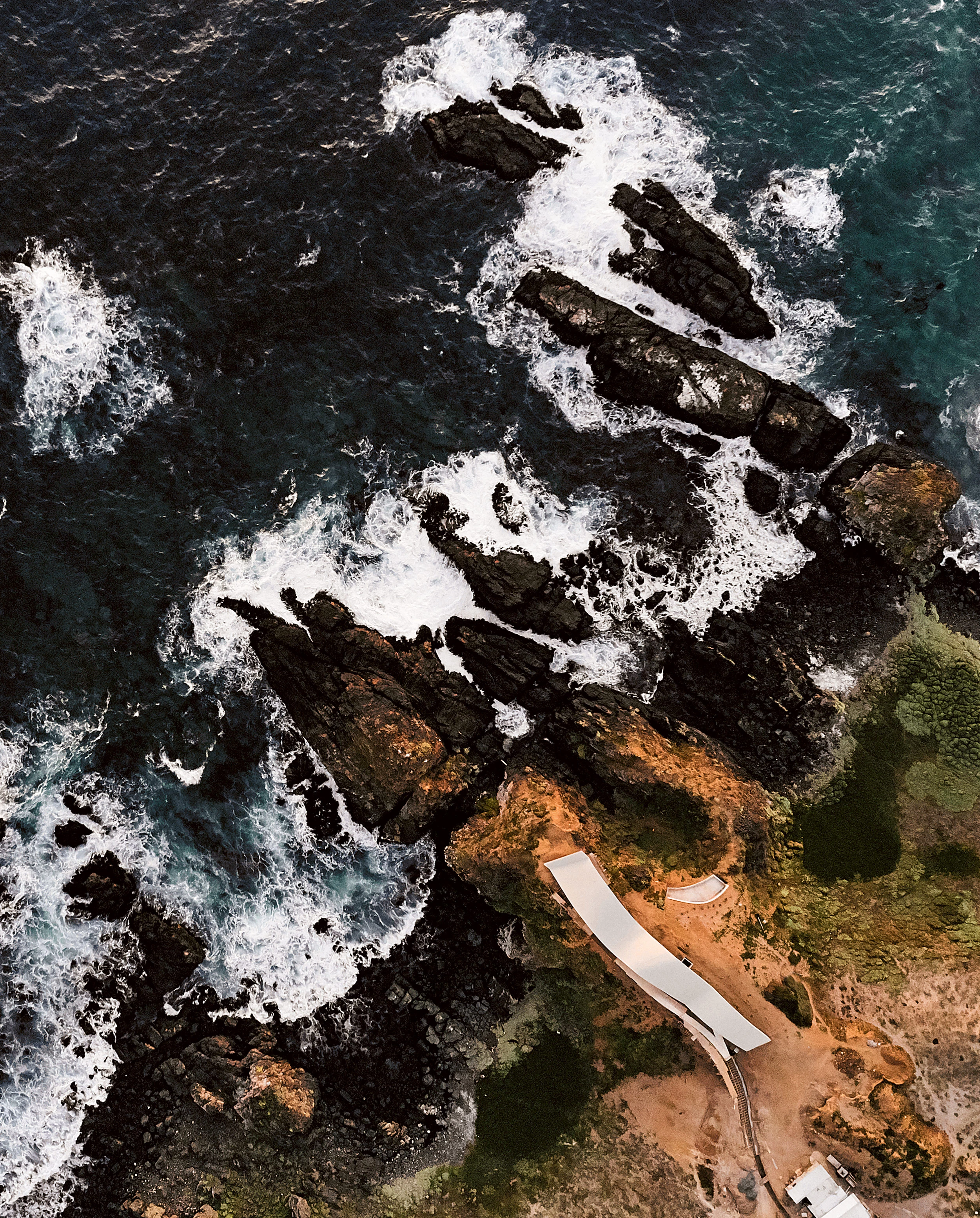 Spreading like a membrane of concrete that evokes the form of a wave, the house seeks to engage in dialogue, through contrast and metaphor, with the powerful context of the location.