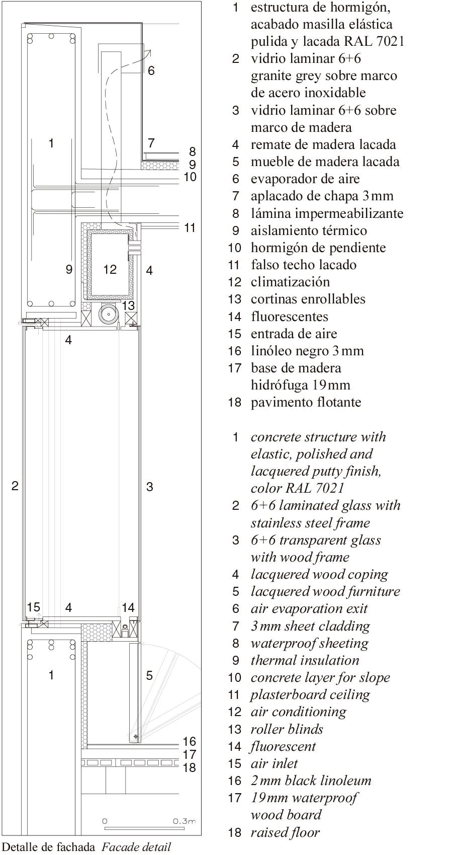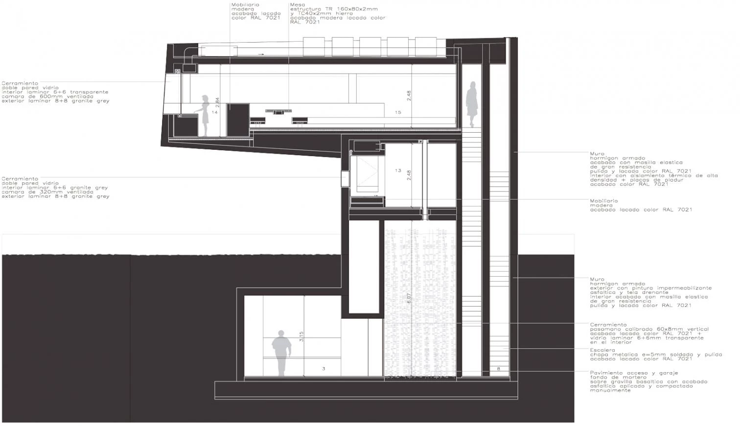 Structurally speaking, the vertical core of communications, of reinforced concrete, takes on a loadbearing function, and the cantilevers are rounded off with corbels of the same material.?On the outside, the monolithic quality of the project is highlighted with an even finish based on polished elastic filler lacquered in a bright anthracite tone that, along with the clear glass with concealed frames, are the only visible materials.