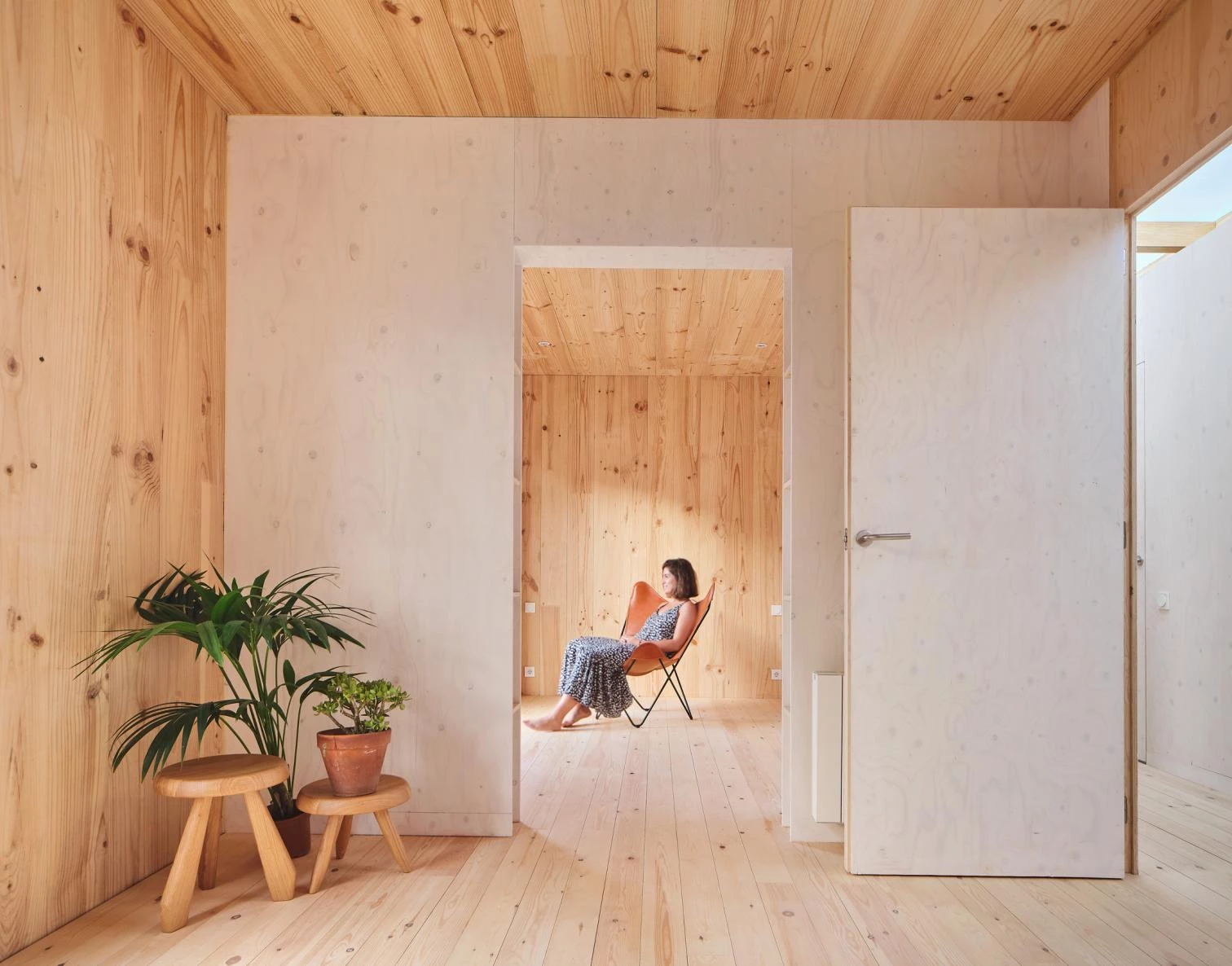 In the comarca of Baix Llobregat, specifically in the Barcelona municipality of Sant Vicenç dels Horts, stands this house on a plot delimited by an openwork brick wall. On the pilastered base of the same material, which contains the clayey earth of the preexisting section, rises a box prefabricated with cross-laminated timber (CLT), clad on the outside in pieces of cork and given a white finish.