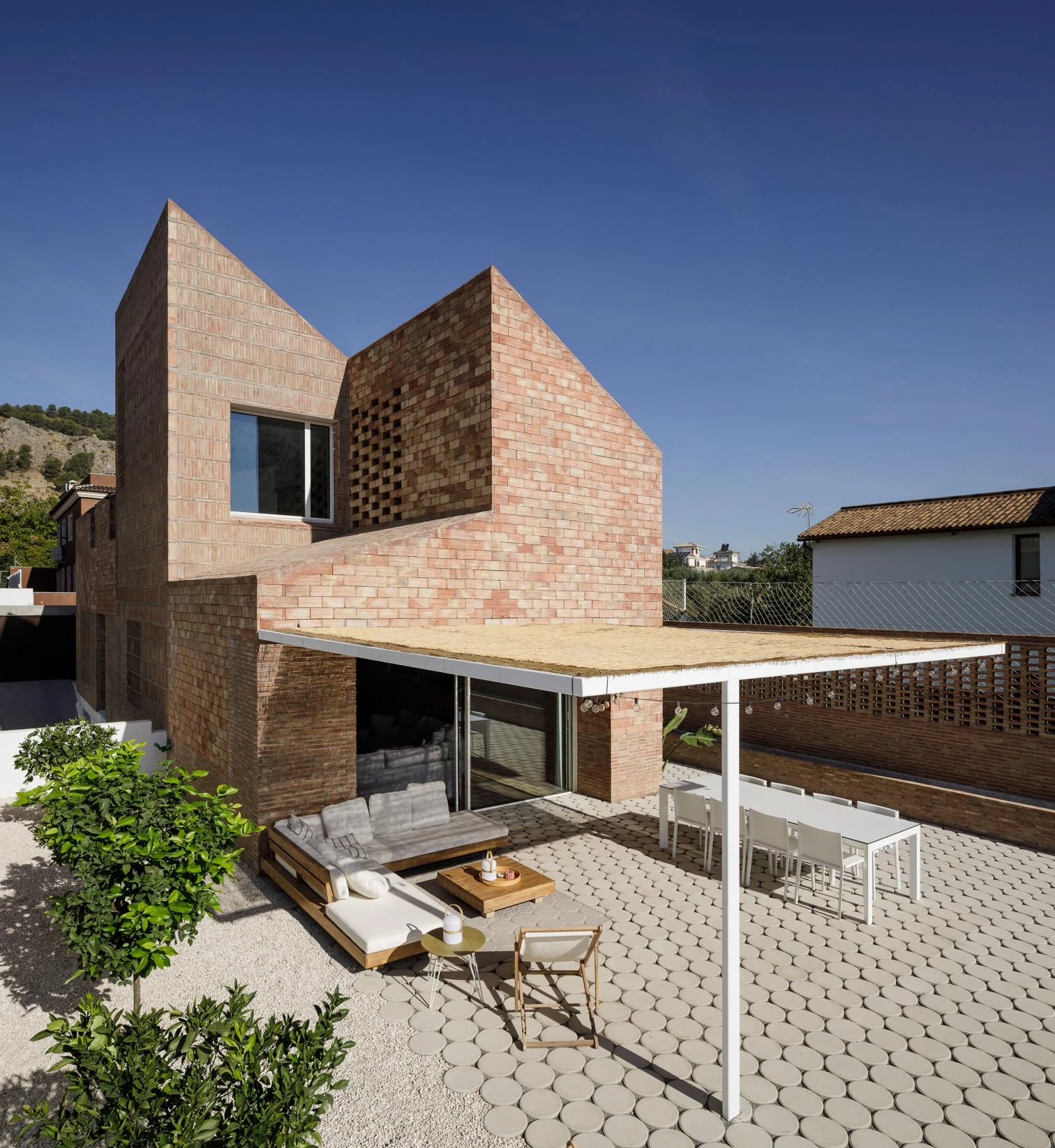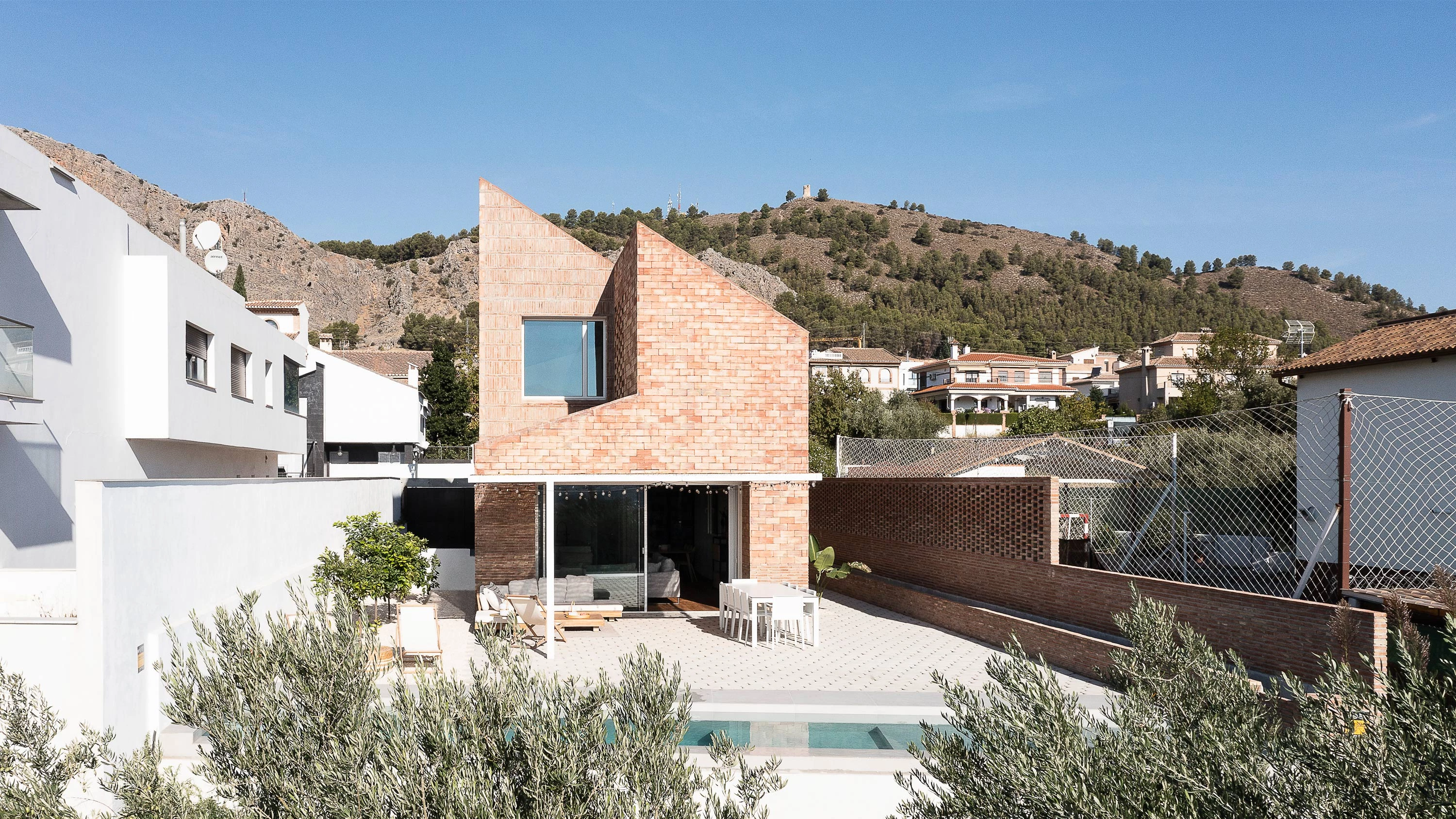 The architecture practice of Juan Antonio Serrano and Paloma Baquero was commissioned to build a house that would evoke the owners’ childhood memories of the Vega de Granada, the comarca where the town of Albolote is located. Different elements of local agricultural building tradition are mixed in this dwelling, including sunlight-filtering lattices like those of the the tobacco dryers scattered in the landscape.