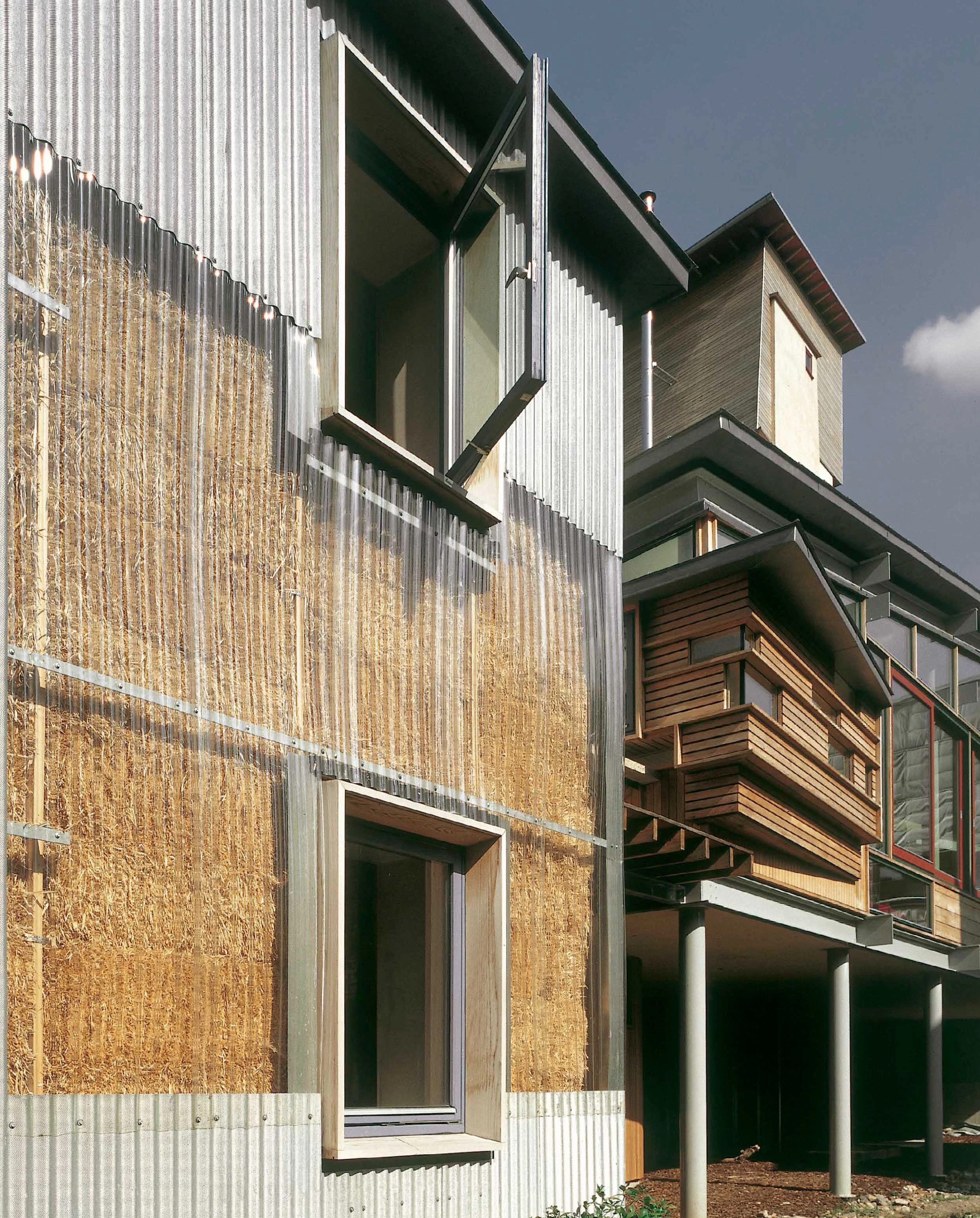 Los arquitectos que trabajon para Sarah y Jeremy, Wigglesworth Arquitects, sin duda aportaron sus ideas y saberes. Y resulta muy difícil deslindar los méritos de unos y de otros, atribuirles el ‘grano’ o la ‘paja’. Sin embargo, a riesgo de equivocarme, me atrevería a culpar a los arquitectos de los puntos más débiles del edificio: la gran superficie en relación al volumen, el infradimensionado de alguno de los sistemas pasivos, la falta de preocupación por la durabilidad de los metales o por la transpiración en el muro de paja y en la fachada envuelta en fibra de vidrio.