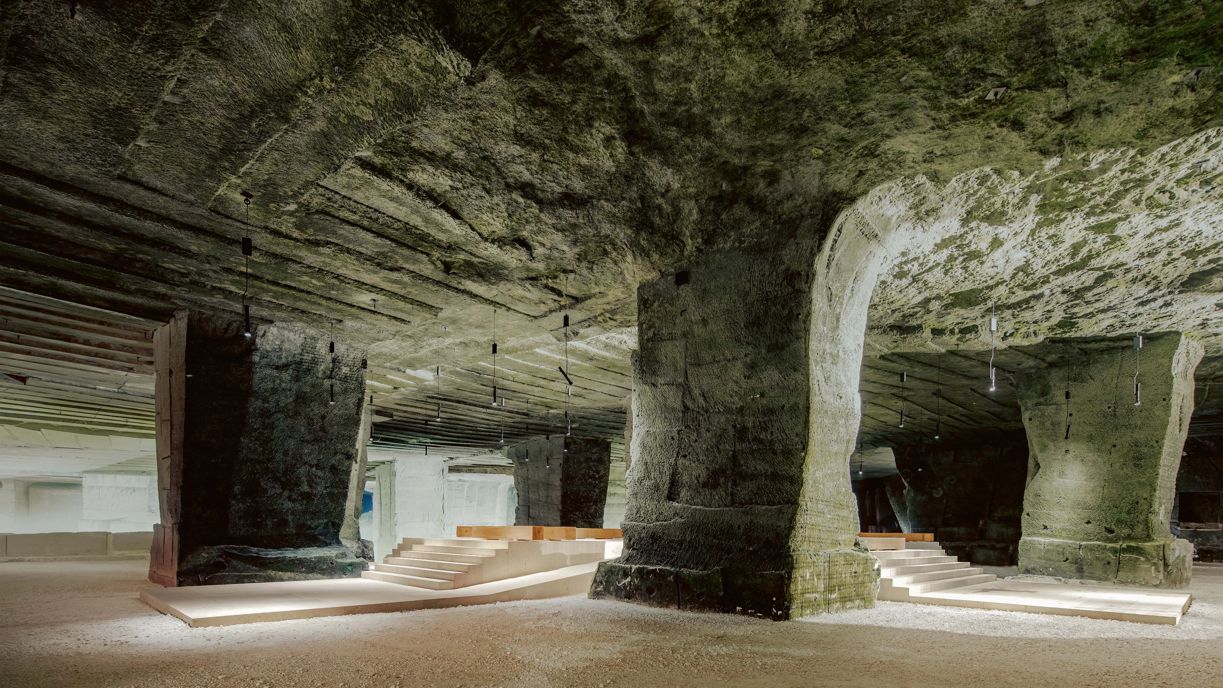 Located in the hills close to the city of Vicenza, the Cavea Arcari was the quarry that provided the precious Pietra Bianca di Vicenza that was used to build, among other buildings, the famous villas of Andrea Palladio. The contour of the exploitation came from cross-tunnels generated as the stone material was extracted, in such a way that huge blocks of rock were left in between, giving structural stability to the cave. After several centuries of extraction, this process formed a space of intricate geometry and great sculptural power, and when the quarry ceased operations, it was sporadically used by Laboratorio Morselleto as a venue for certain events having to do with the family enterprise. In 2010, David Chipperfield Architects was commissioned to fit out the space for cultural and artistic purposes, while respecting the qualities of the very unique enclave.