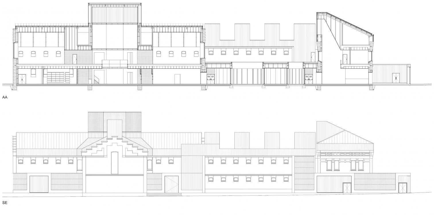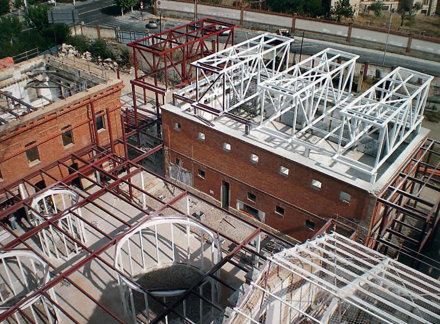 The most characteristic feature of this Neomudejar building was its brickwork and the facade details, which have been preserved in the project to refurbish and extend the facility, which now accommodates a civic and cultural center. This program is much more appropriate to the central location of the building in the city of Palencia. The double-height pavilions have been restored, but the single-story ones were demolished because they could not be adapted to the building’s new uses. The interior partitions and slabs were taken down to adapt the space to a program with large open-plan surfaces, and the tiles of the roofs were also replaced with zinc. A new load-bearing steel structure that is independent from the old walls and concealed in the interior chamber supports the new slabs and roof.