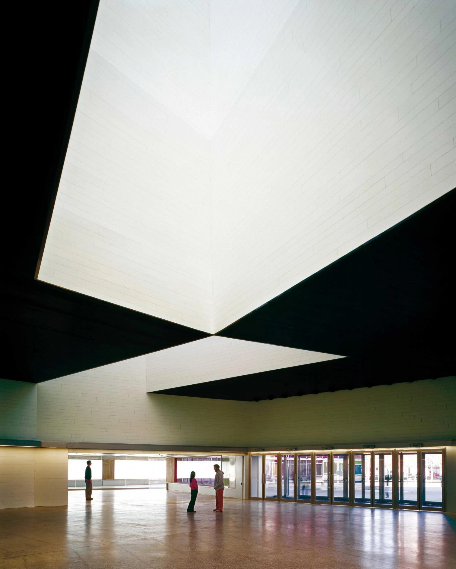 The different halls allow accommodating exhibitions of different sizes and characteristics; each one generates a continuous but spatially differentiated environment that opens up to the other rooms and courtyards, offering longitudinal, transversal and diagonal views, in a complex three-dimensional pattern which also incorporates six large skylights.
