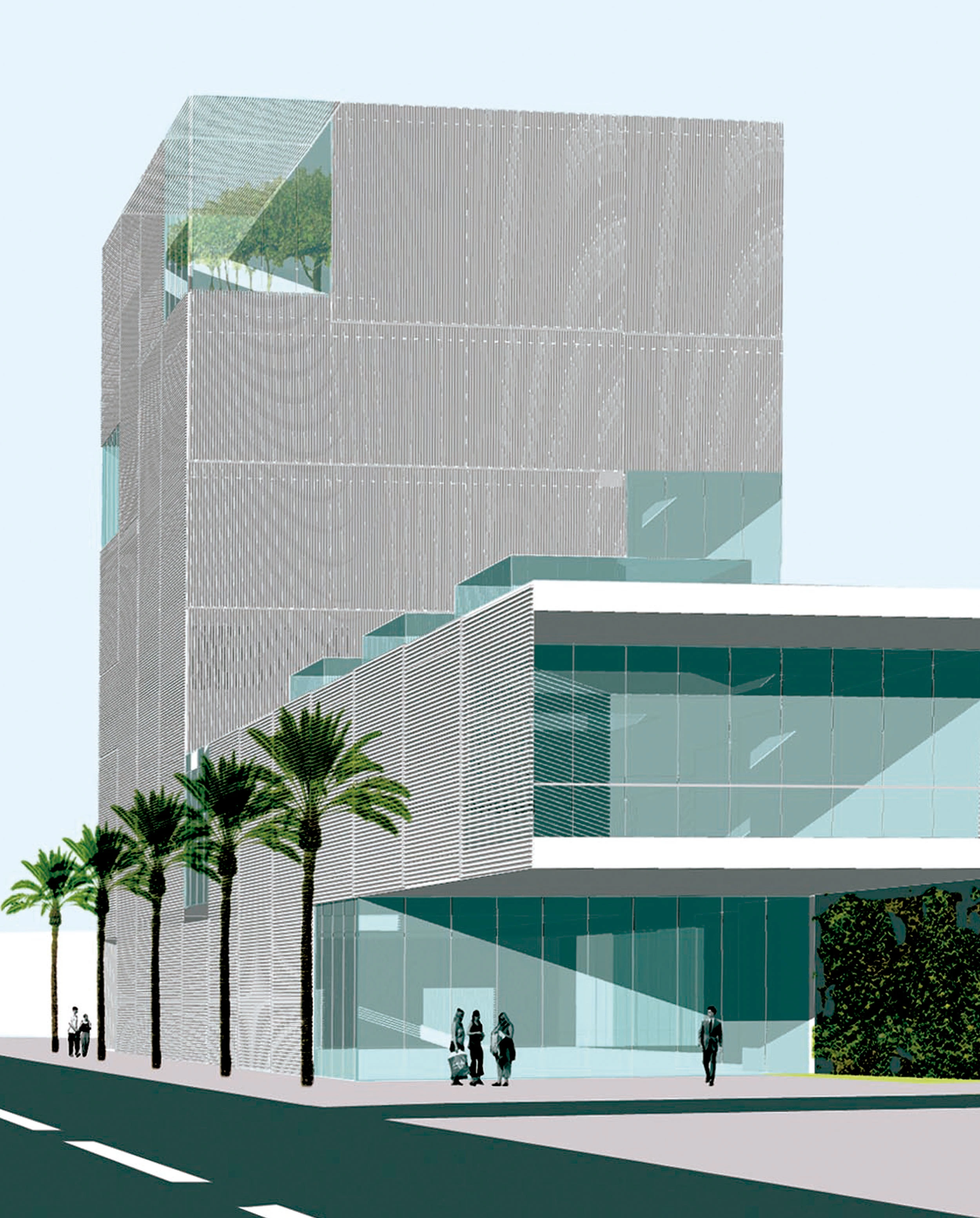 Situado en el dinámico barrio de Design District, el edificio, envuelto en una combinación de celosías de aluminio, desdobla su programa para responder a dos escalas diferentes: por un lado, el cuerpo horizontal iluminado cenitalmente cierra el eje peatonal, mientras que la torre dialoga con la autopista y sitúa la acción en la ciudad... [+]
