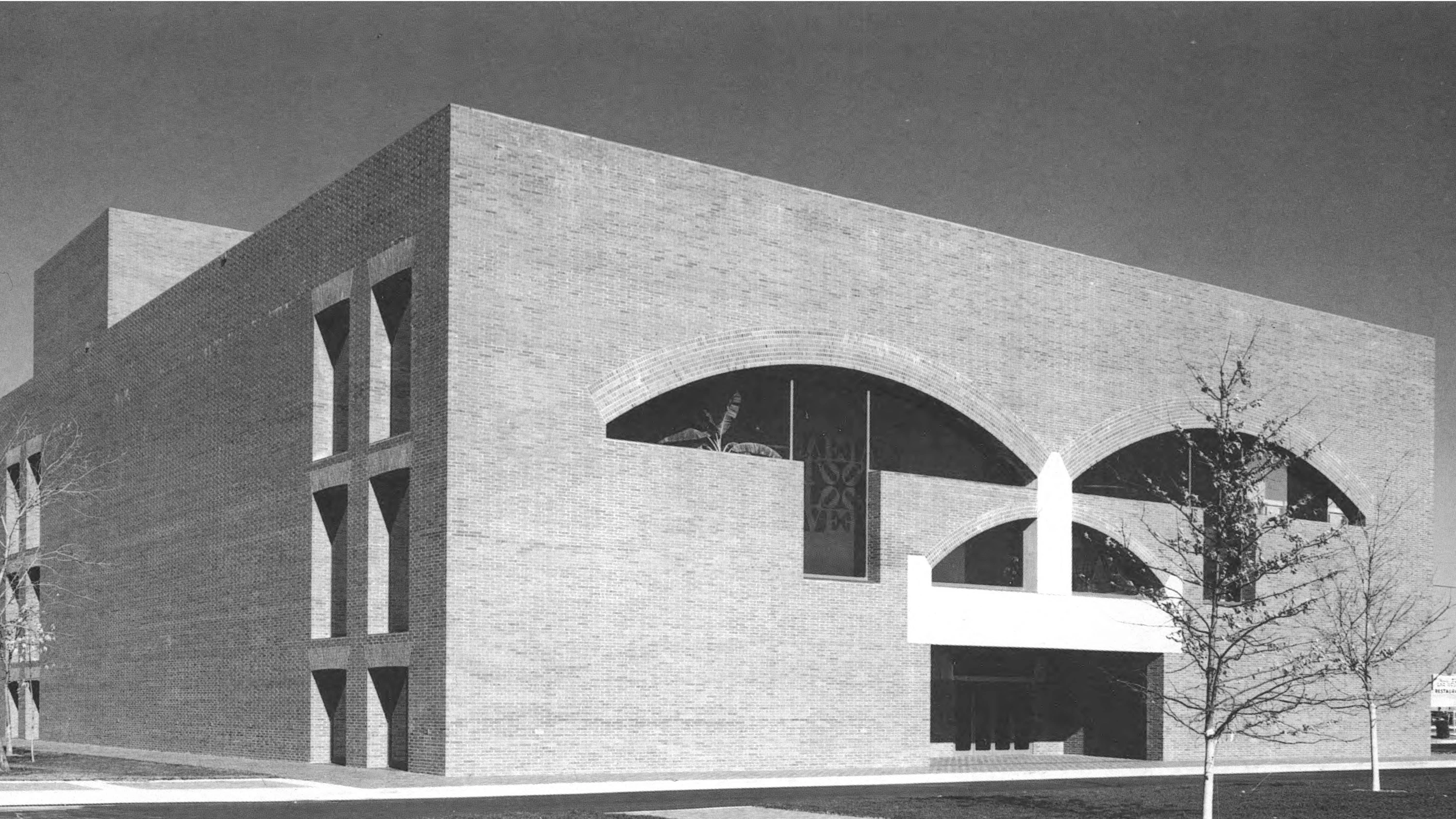 Los usuales problemas presupuestarios hicieron que finalmente el conjunto quedara reducido a uno solo de los edificios, una sala multifuncional que agrupa las actividades de concierto, teatro y ballet, cuya construcción se inició en 1970 y finalizo en 1973. El edificio adolece, tal como temía el arquitecto, de su carácter de parte de un conjunto y produce una cierta sensación de desnudez. El alzado principal, que recuerda inevitablemente un rostro o una máscara, es la única ocasión en que Kahn se permitió una referencia a un lenguaje arquitectónico propiamente representativo, con un resultado considerado en general como desafortunado…[+]