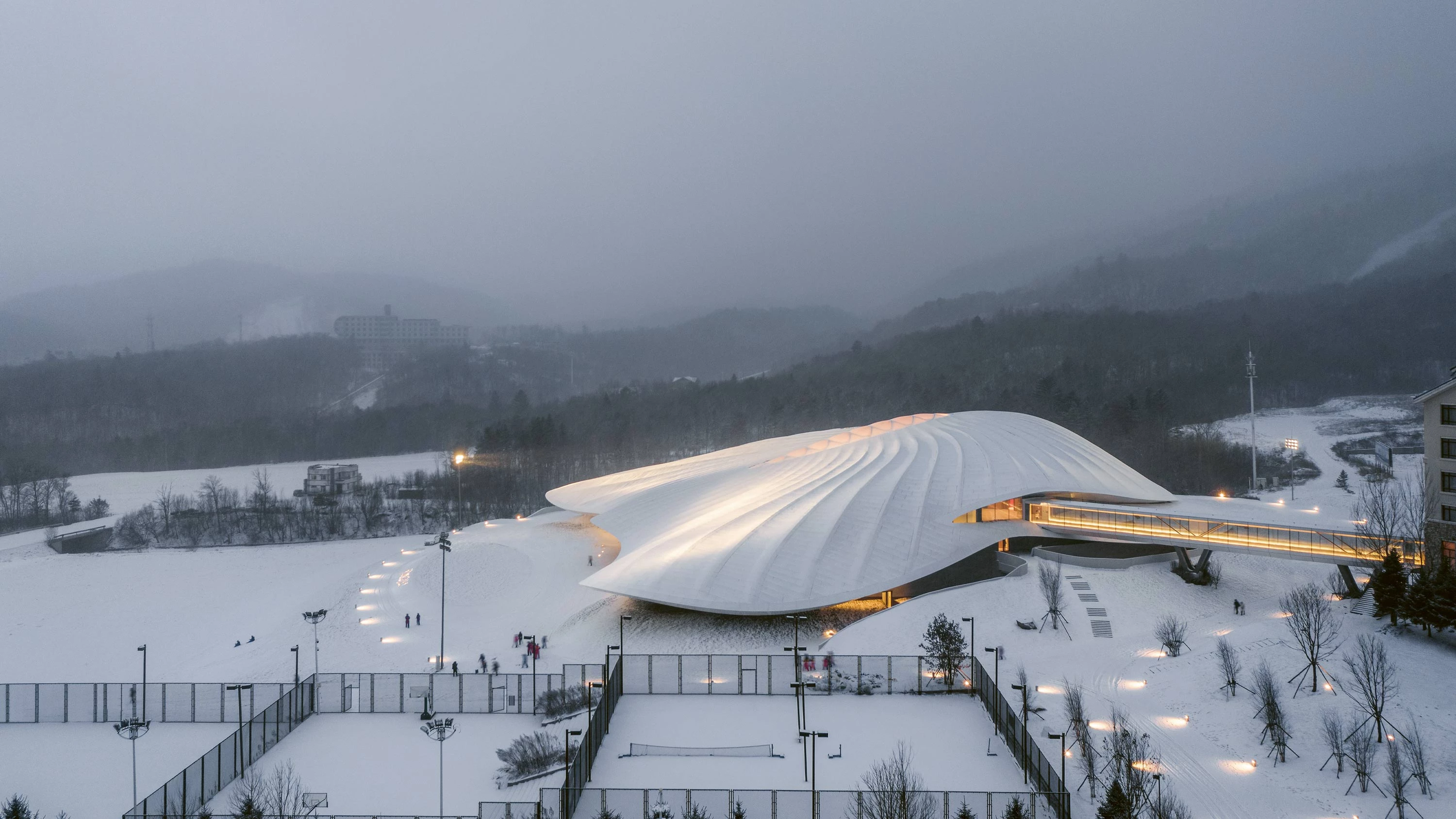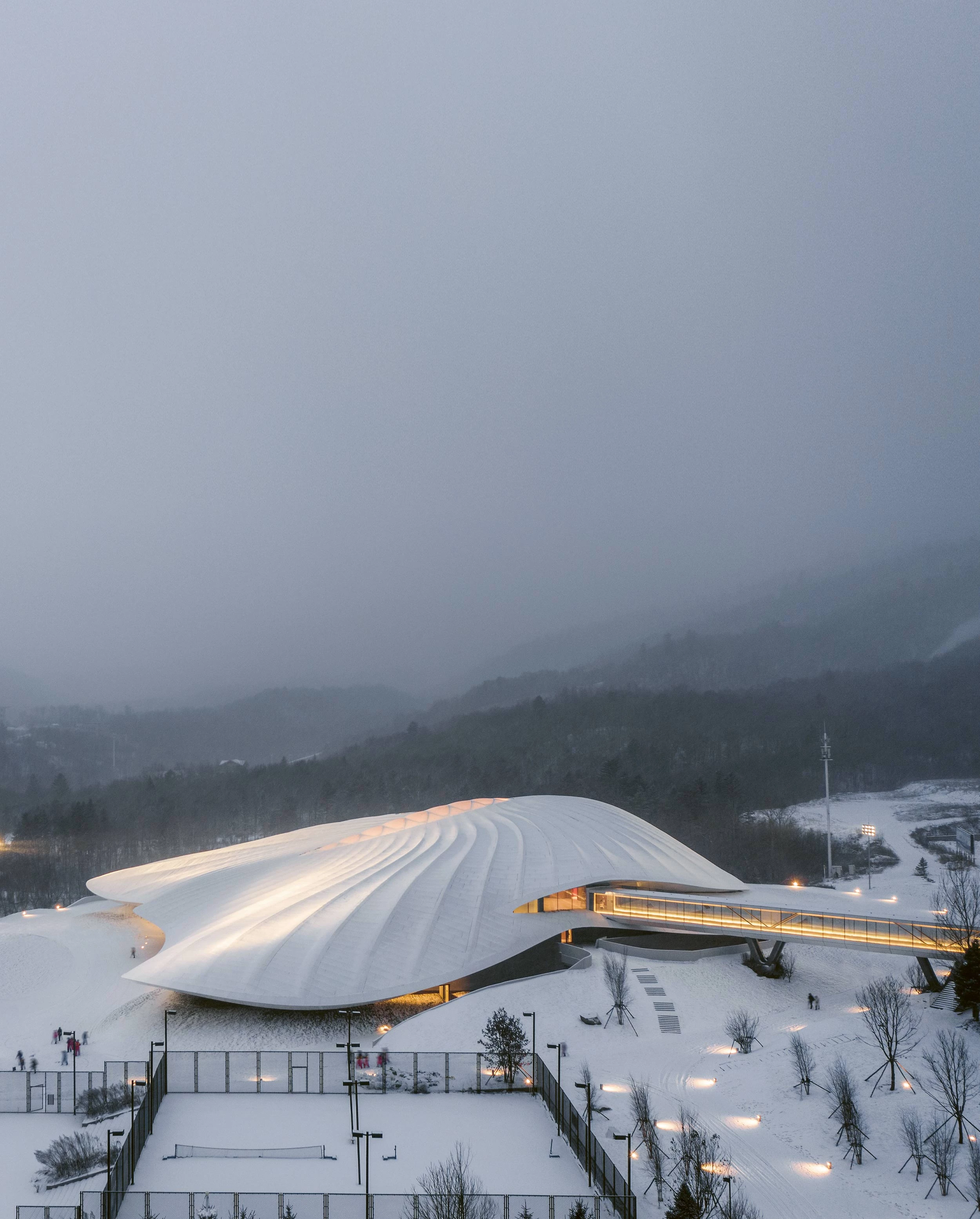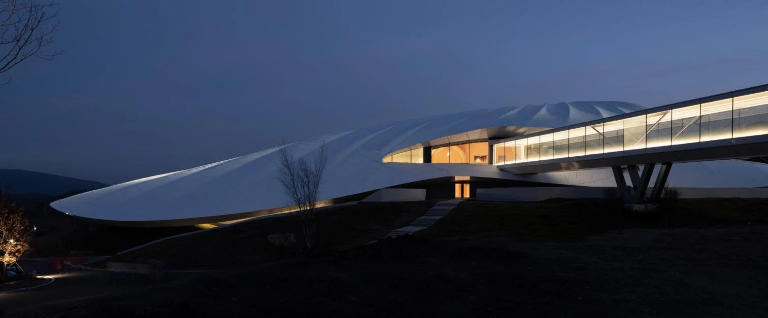 The practice established by Ma Yansong in 2004, MAD Architects, which runs offices in Beijing, Los Angeles, Rome, and Jiaxing, was commissioned by the Yabuli China Entrepreneurs Forum to design this venue for its annual summits in Yabuli, in the northeastern part of the country.