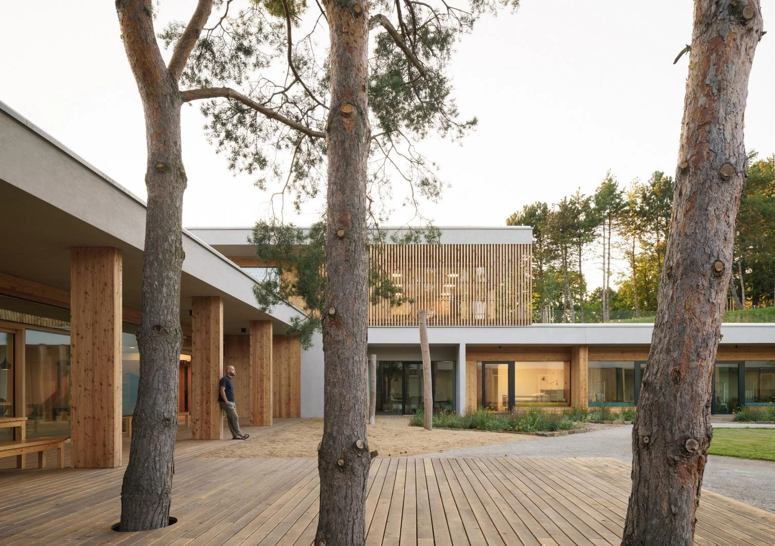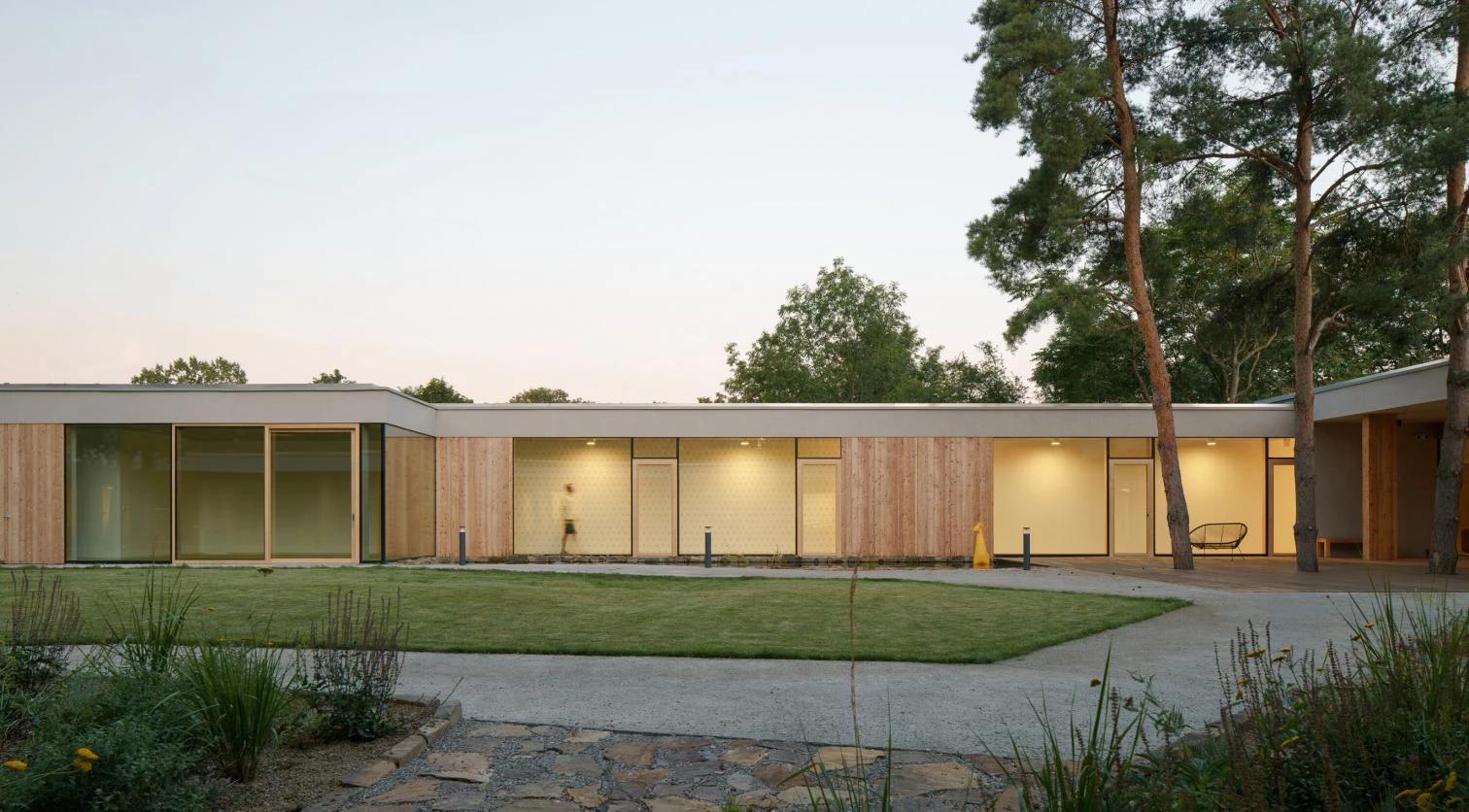 This center for the palliative care of children, in the Czech city of Brno, also provides rehabilitation, therapy, and holistic support for the patients’ families. In contact with the surrounding nature, the complex is embedded into the slope of the site with three levels and green roofs, blending with the environment.