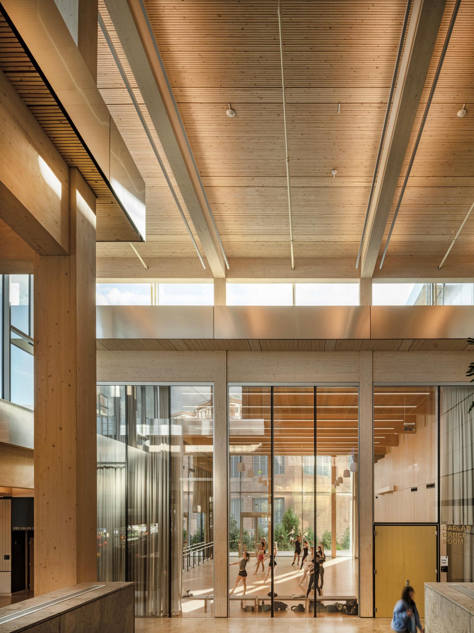 Clark Construction Group; StructureCraft (madera estructural timber); Lindner Group (muro cortina curtain wall)