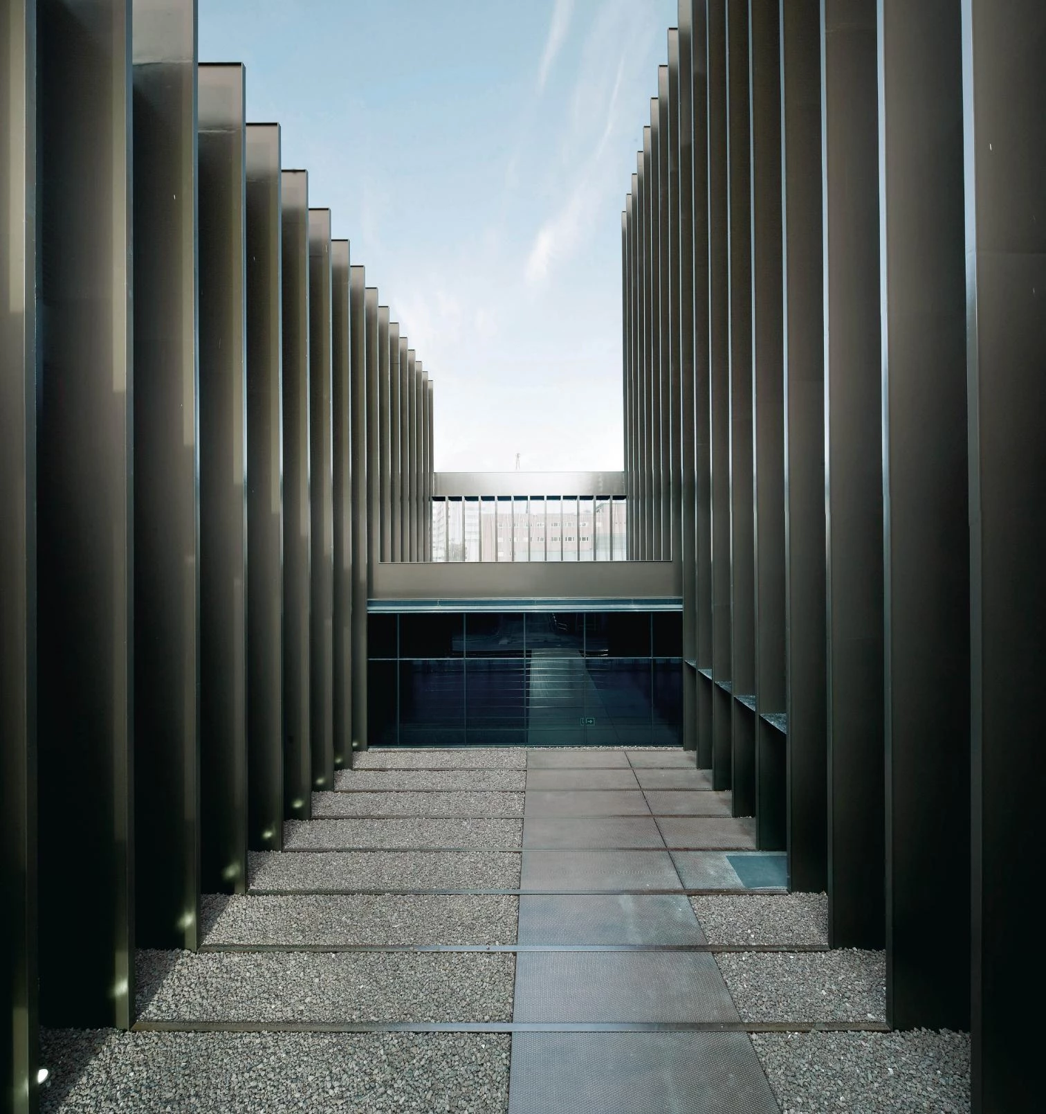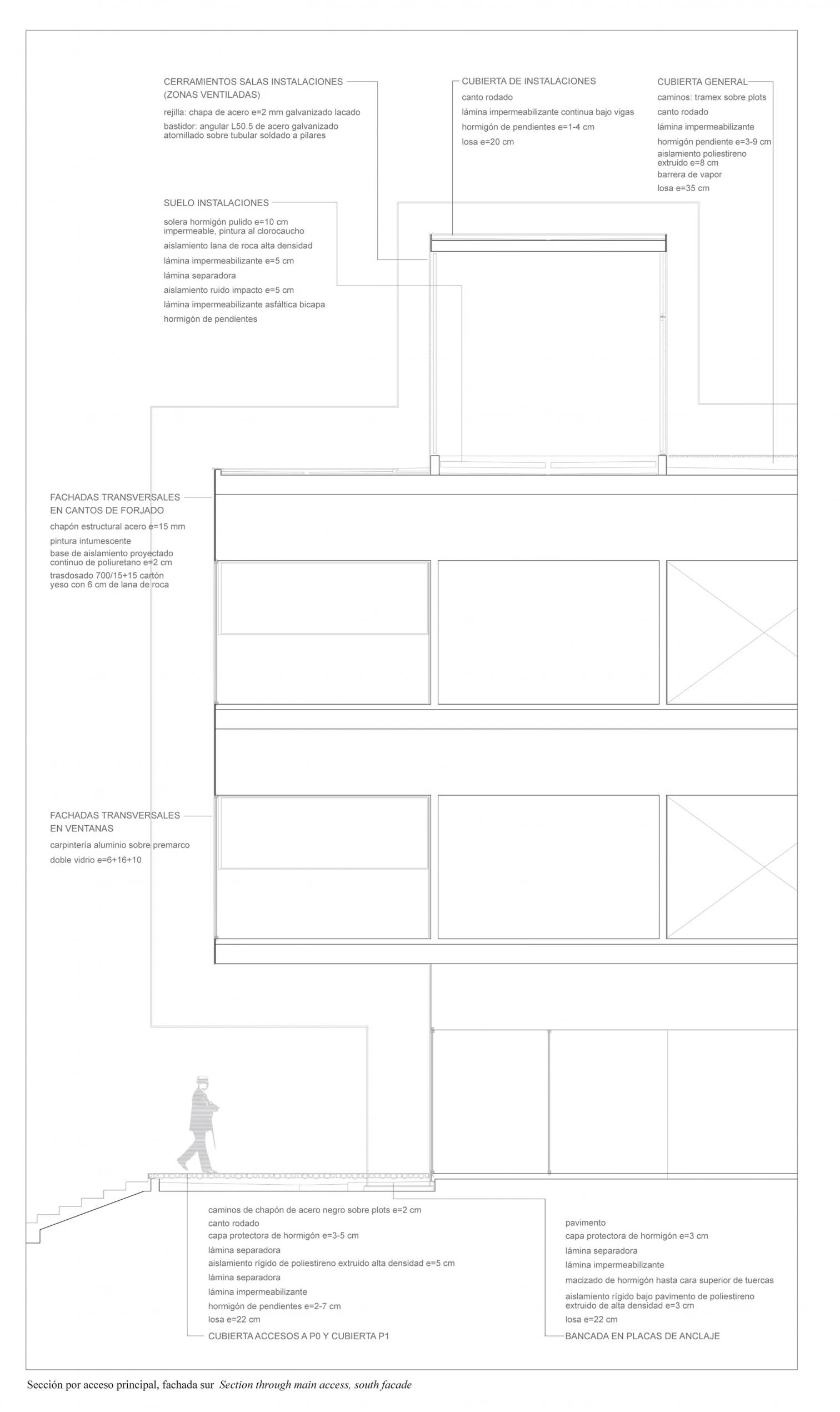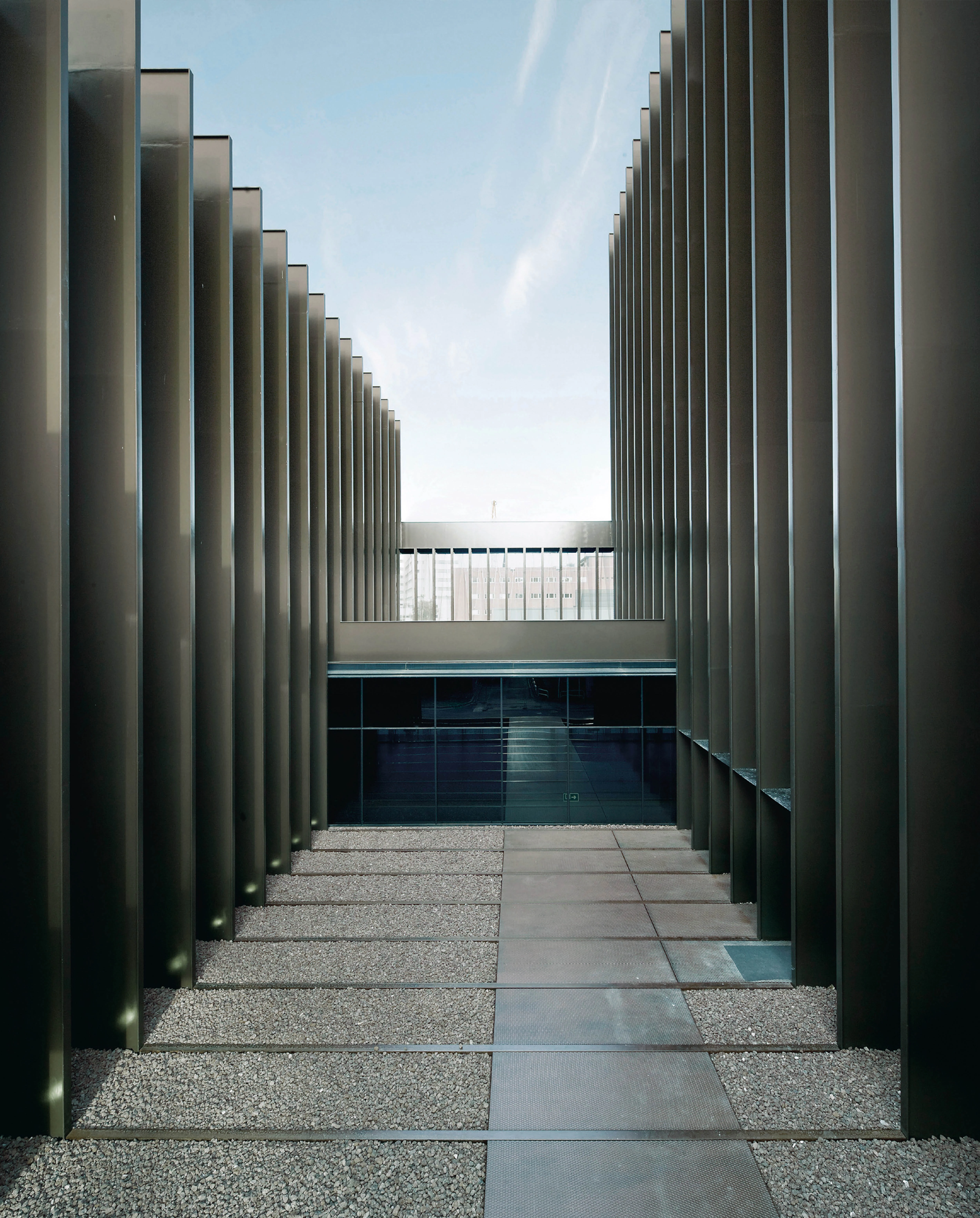 The 1.2-meter-deep steel ribs, with an H-section and placed also at 1.2-meter intervals, define the building’s volume and let the structure address the program requirements offering a unified global image.