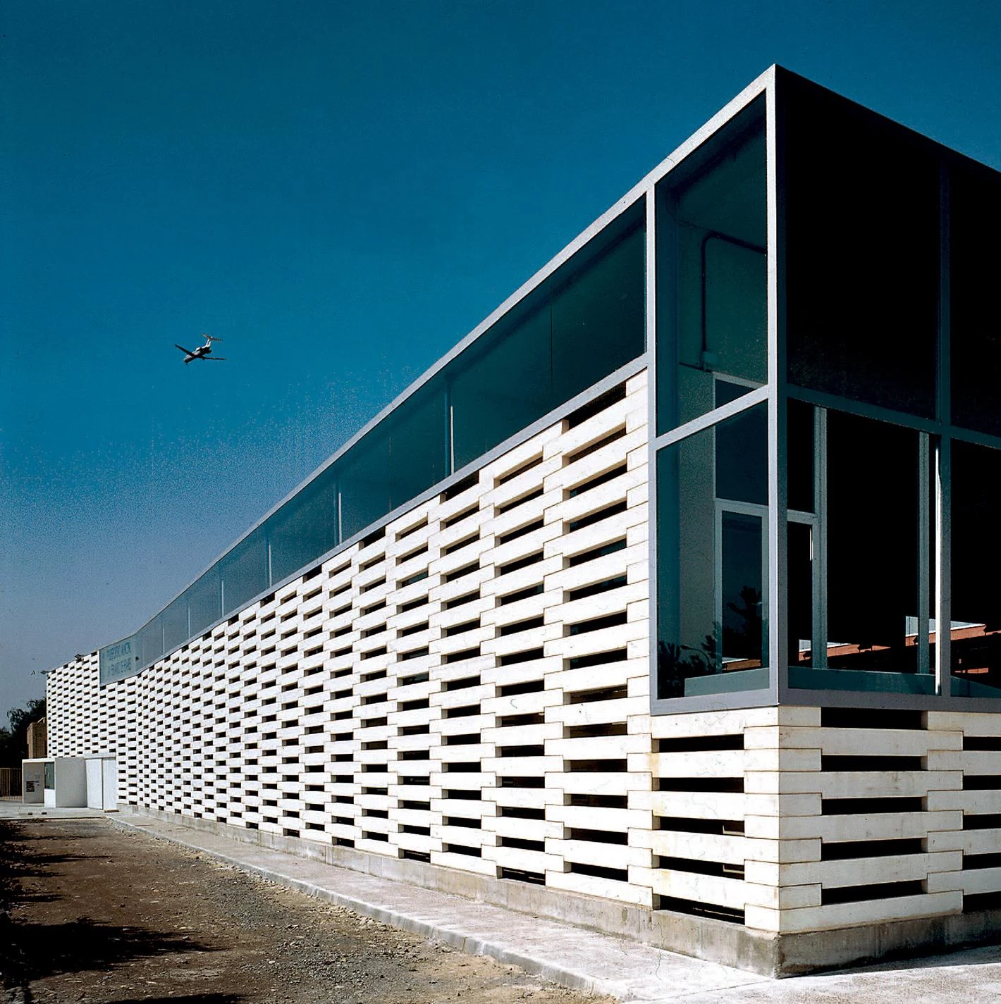 Using an elementary working scheme, the Center is organized following a linear structure, arranging its compositive elements in a consecutive sequence: link lobby, changing rooms and amenities core, instruction vessel and multipurpose vessel. The volume containing the pools is an open-plan space; the vertical elements of the concrete structure are embedded in the exterior enclosure wall. A flat beam that rests on the heads of the reinforced concrete pillars, located between the two sheets that form the exterior wall, supports the prefabricated beams on which the lightened slabs of the roof rest, the edge of which is tied with a concrete hoop. Due to the proximity of the water level, the building rises above the terrain, placing two vessels on the first floor and leaving the ground floor for storage and installations. This solution relieves the problems that the proximity of the Henares River entails, giving the main hall a predominant presence with respect to the decaying environment, and offering a clearer view of the trees and horizon.