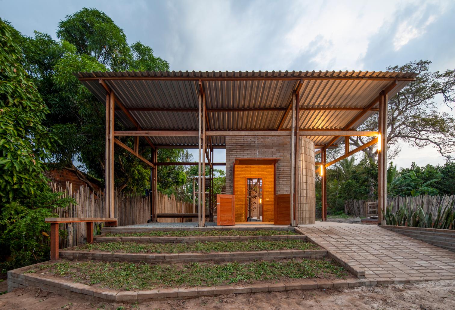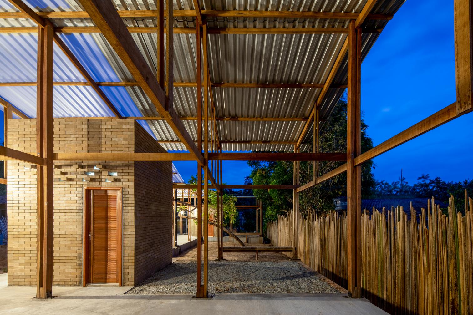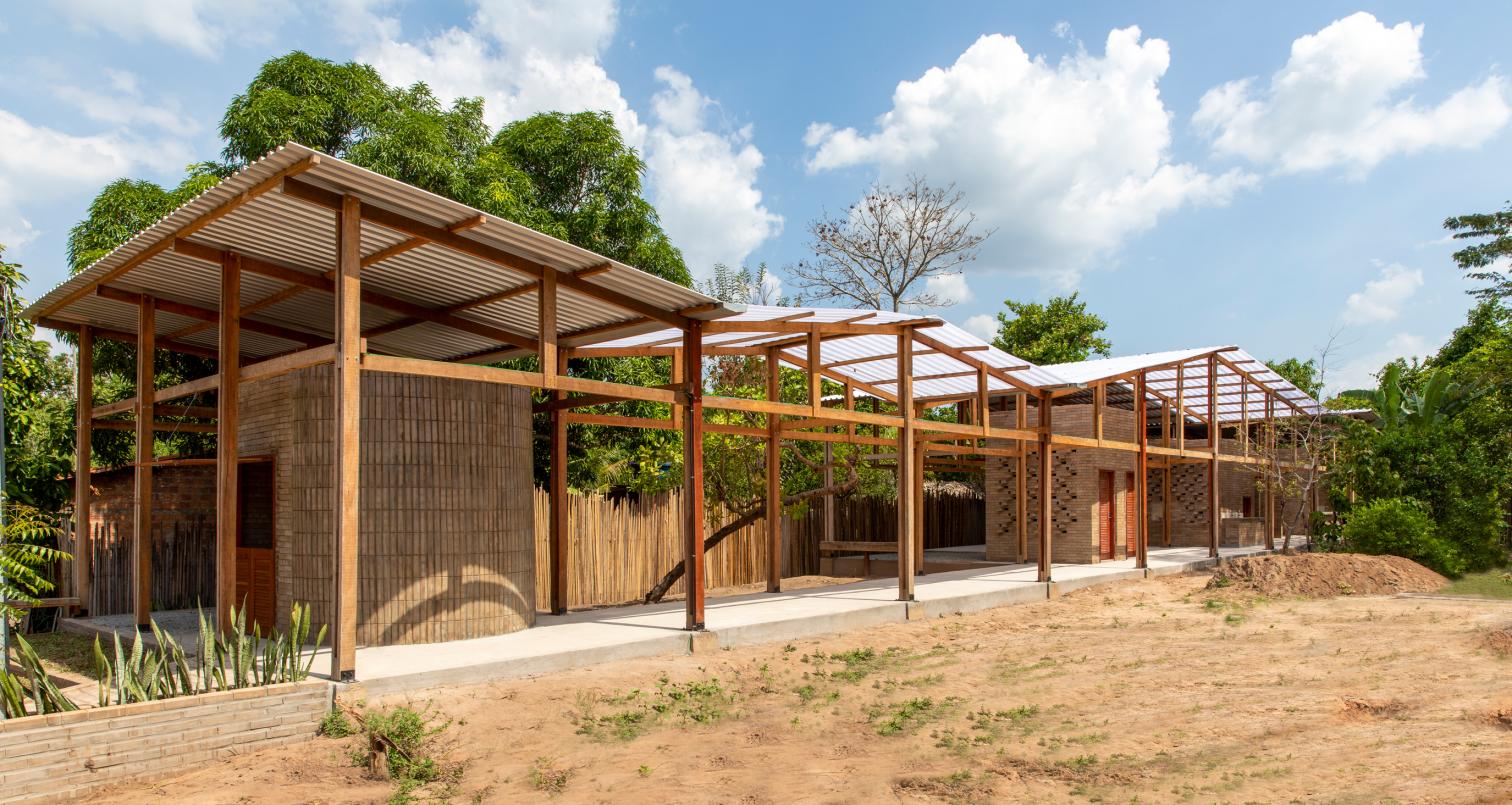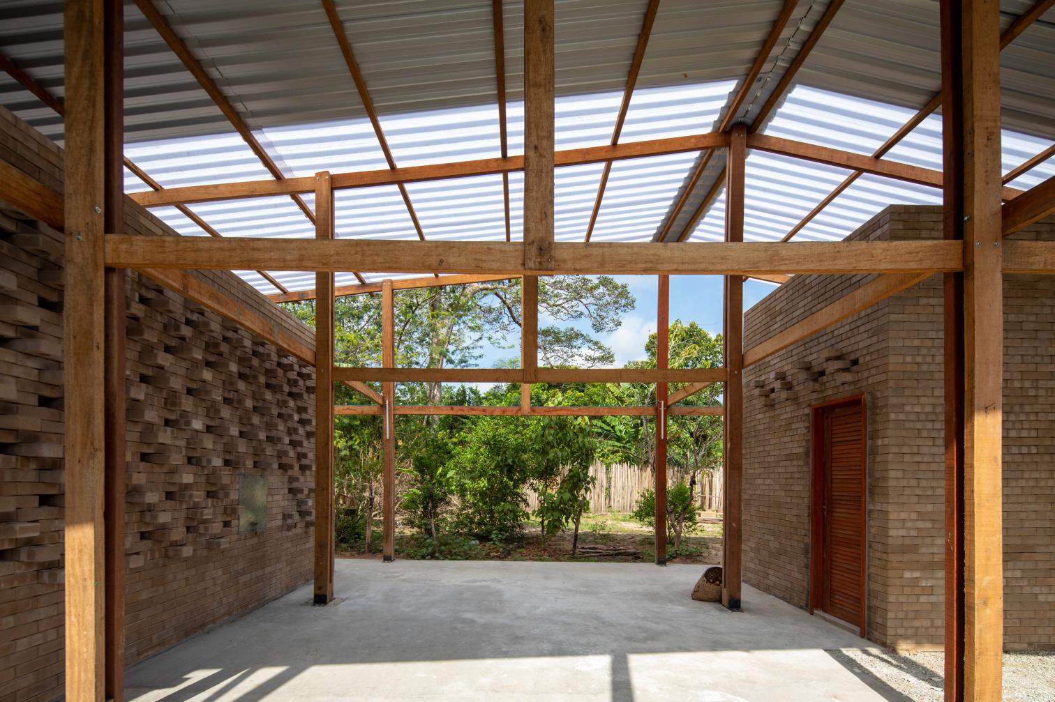 With a built area of 275 square meters, the project is based on a rereading of building tradition with materials of the region. During the rainy season, because the village is located in the watershed of the Mearim River, it is necessary to travel by boat. Given geographical conditions and lack of access to construction materials, blocks of rammed earth were the chosen material, composed of clay soil, water, and a small amount of cement, manually compressed with a mechanical press.
