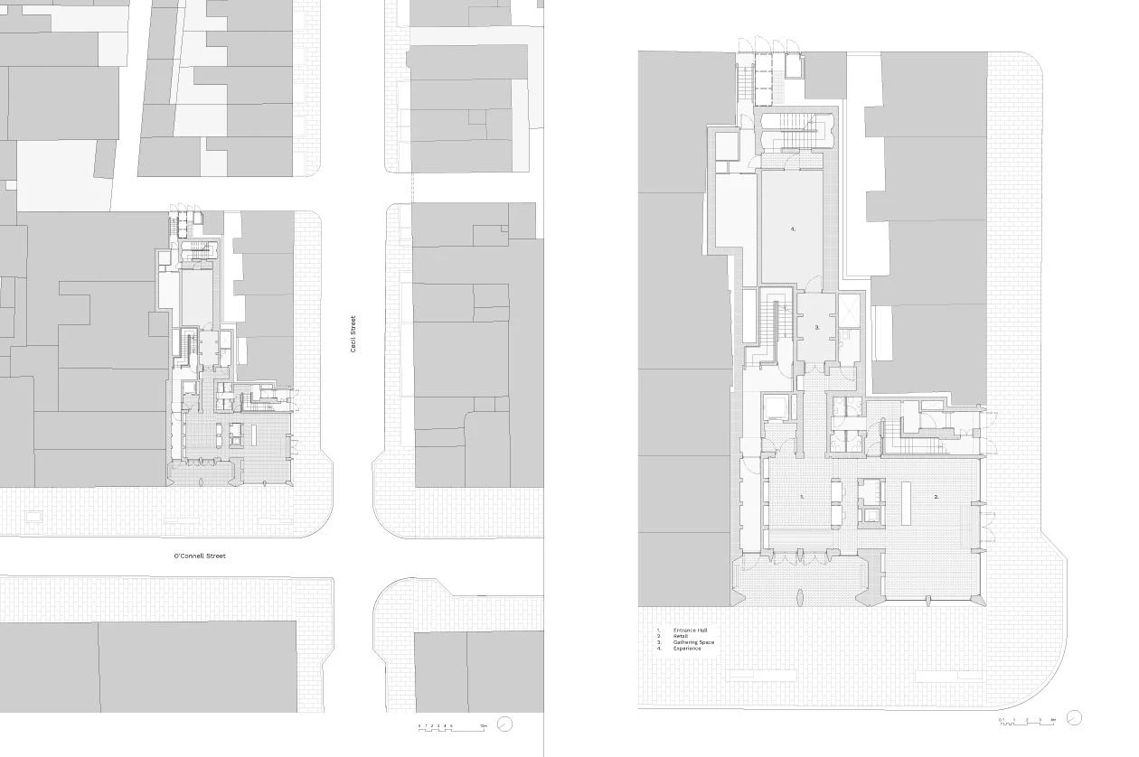Located on O'Connell Street, in the heart of the southern Irish city of Limerick, the International Rugby Experience building is respectfully inserted amid historical constructions. Reaching a maximum height close to 34 meters and a total area of 2,110 square meters distributed in seven floor levels, the rugby center features spaces for exhibitions, educational activities, and events.