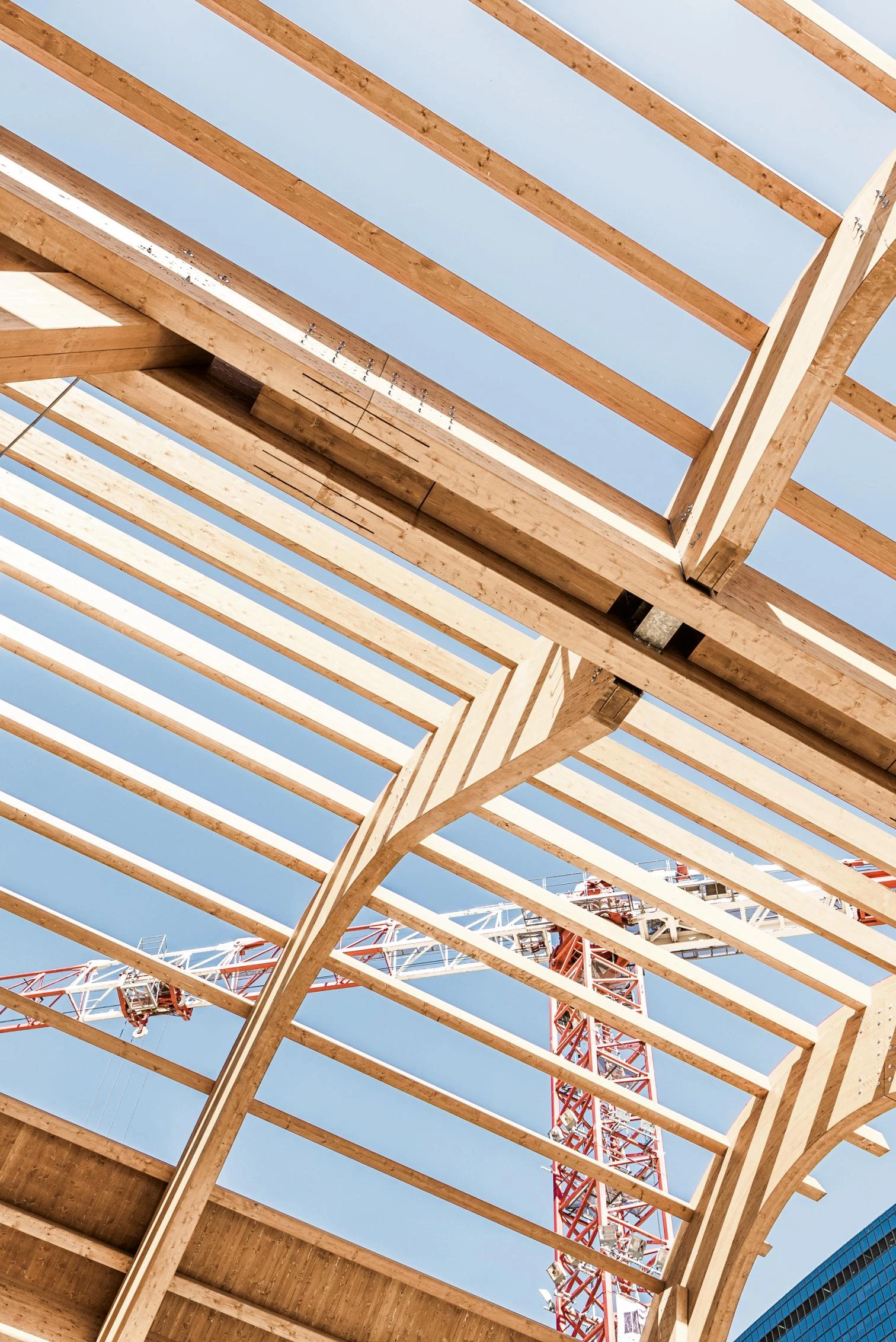 Wood is chosen as the main material in the project because it is light and flexible, making it possible to rest the new structure on the existing one built in reinforced concrete. The steel part of the concrete serves as base of the new columns.