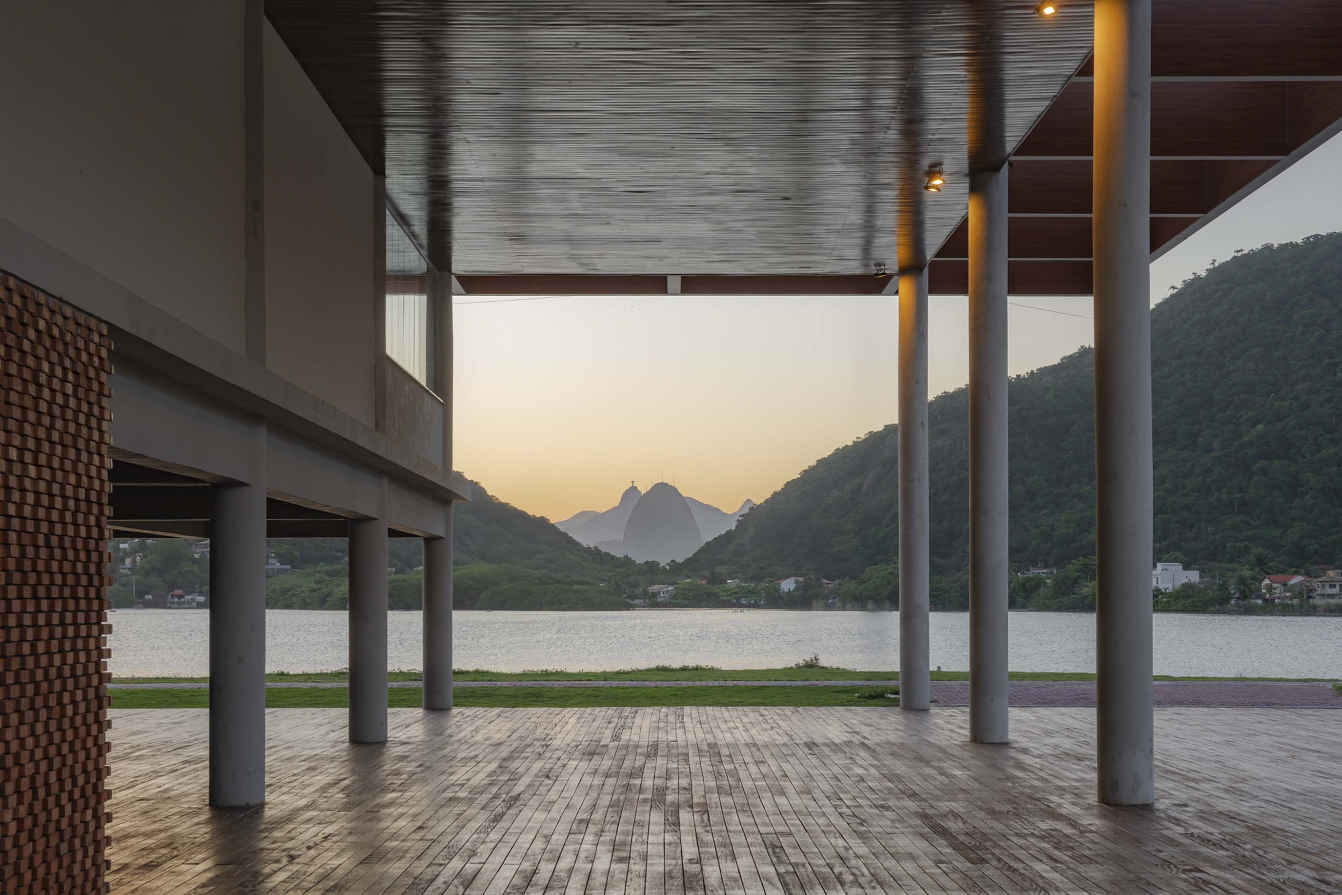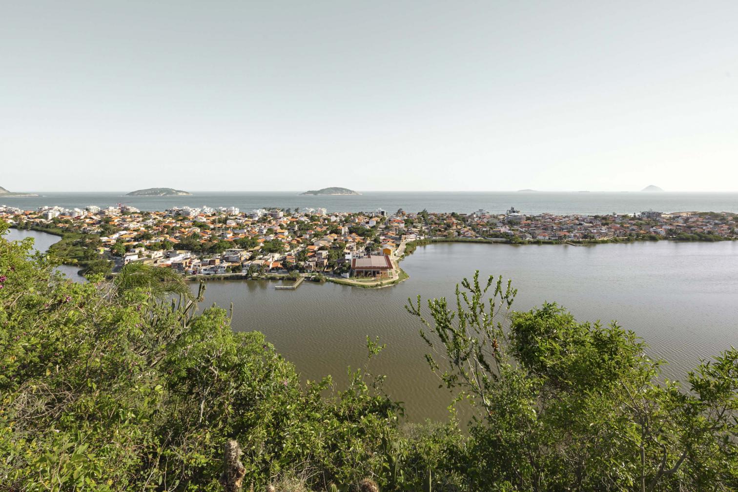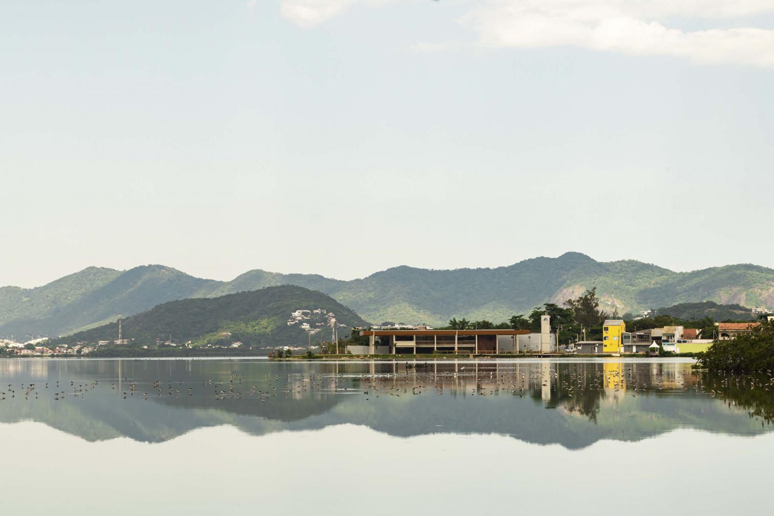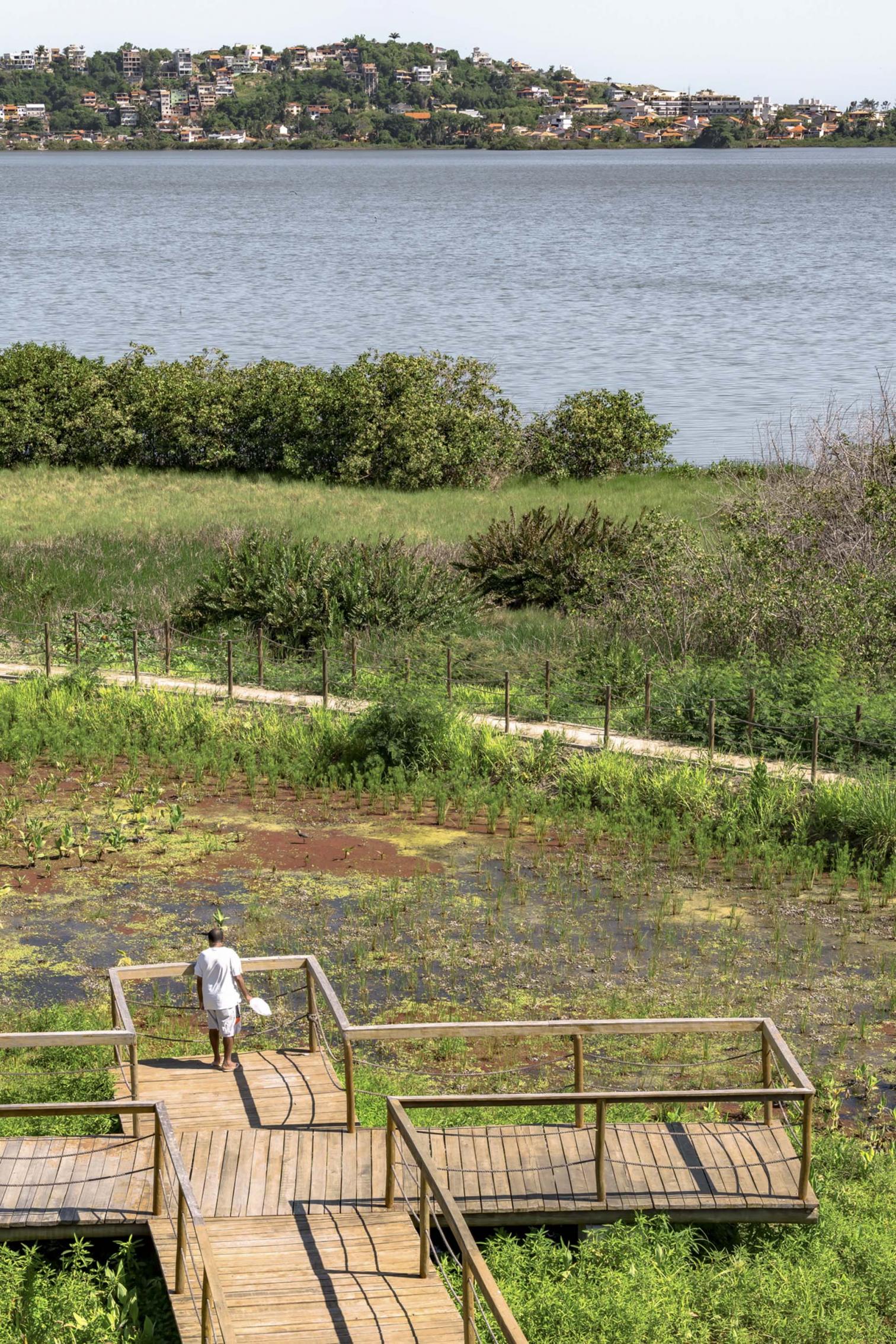 The Sueli Pontes ecomuseum of the Orla Piratininga park is located on the shores of the Piratininga lagoon in Niterói, near the bay of Rio de Janeiro. The project, a collaboration between the Dutch firm KAAN Architecten and the local studios UrbSP and Embyá, aimed for the preservation, revitalization, and ecological restoration of the lagoon, using native plants that serve to filter and clean its waters. The ecocultural center stands as the core of the operation, which includes paths and viewpoints arranged across the surrounding parkland.