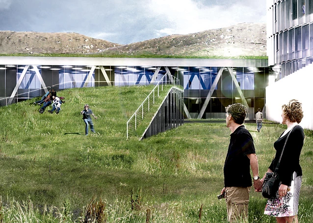 The new Education Center is located on a hillside, 100 meters above sea level, outside Torshavn, the islands’ capital. It is the largest education building in the history of the Faroe Islands, and is meant to serve as base for the coordination and development of all educational programmes in the region. With 19,200 square meters, the new center includes in one building a gymnasium, Torshavn’s Technical College and the Business College of the archipelago, accommodating 1.200 students and 300 teachers.