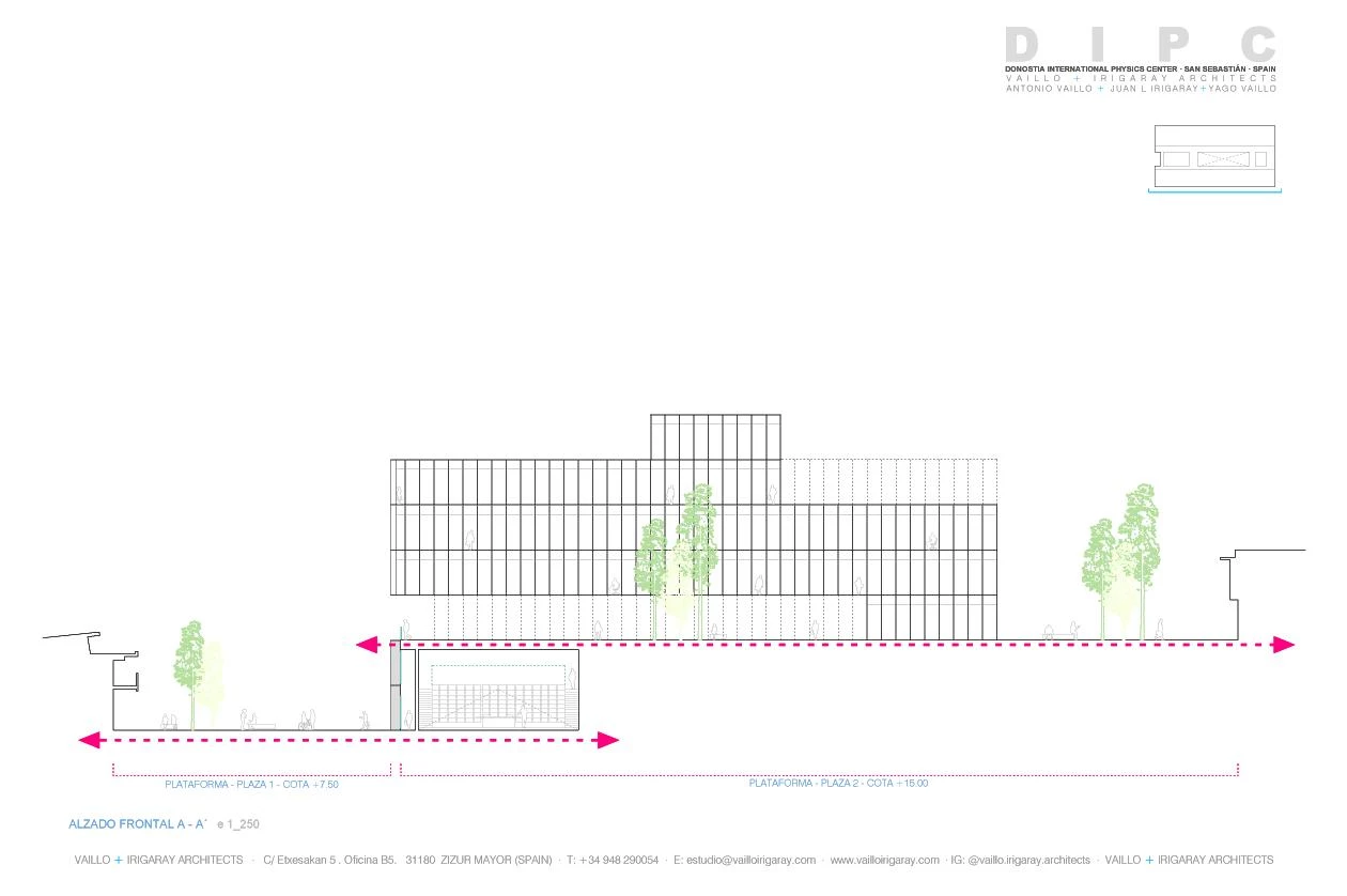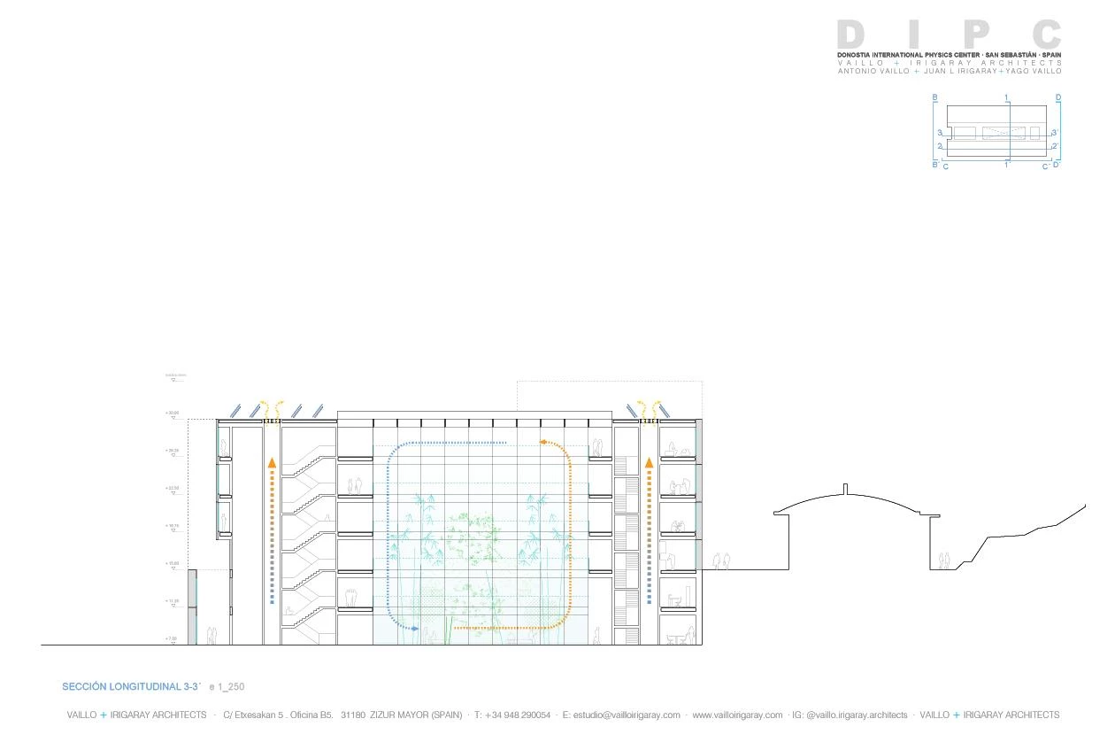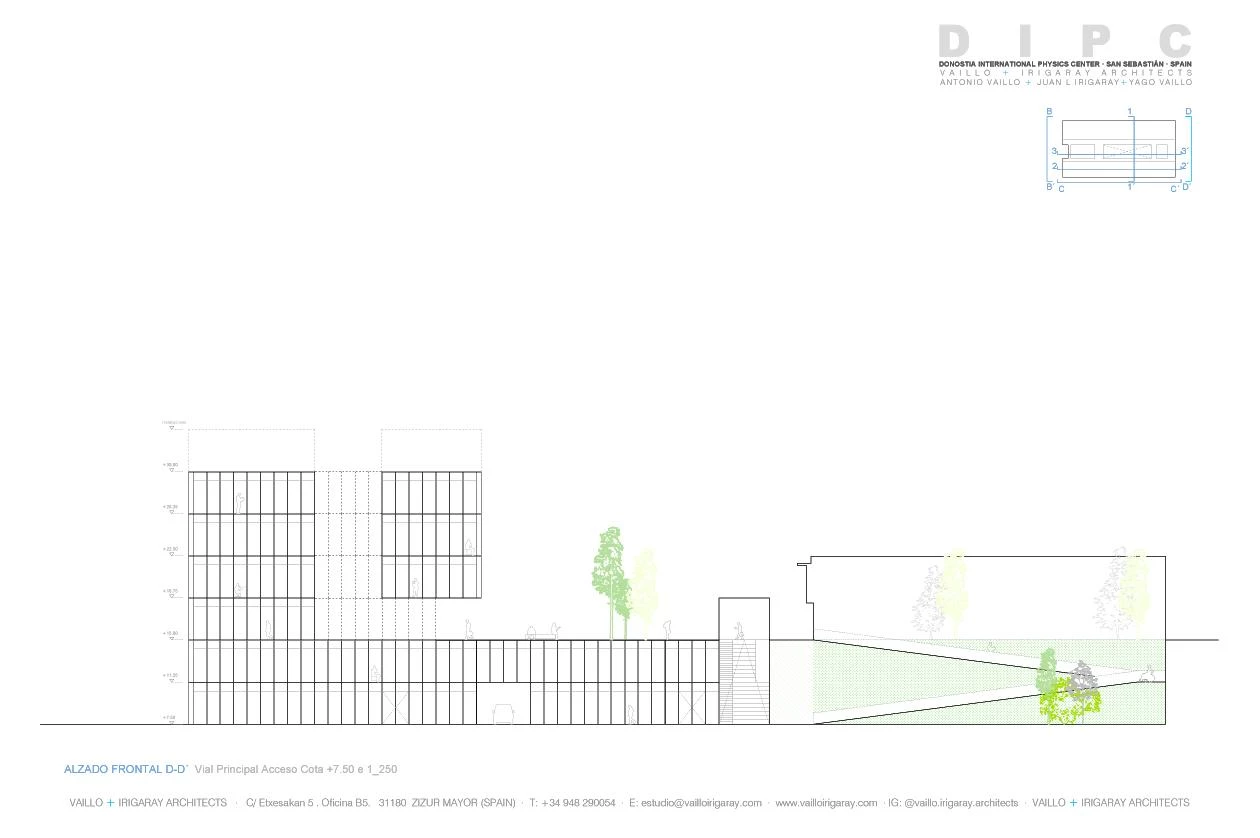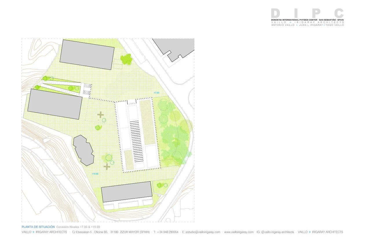 The firm Vaillo+Irigaray Architects has won the competition to give the Donostia International Physics Center (DIPC) a new building in San Sebastián. The research center wants a unique, immediately recognizable image that will also serve to organize the current premises, consisting of four buildings on a site with a steep slope.