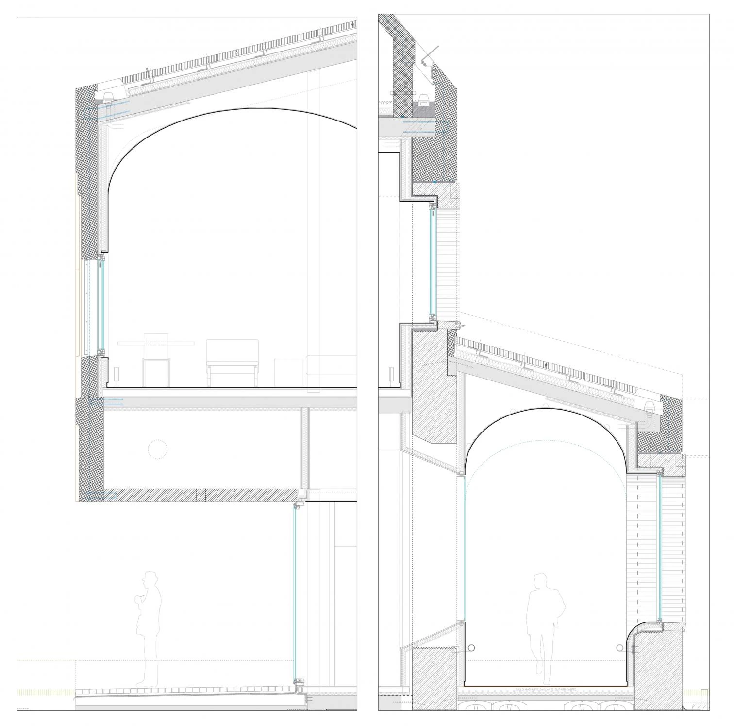 The building’s enclosure is tattoed with a rhythmical relief that evokes the original windows, on top of which go the actual ones; a lyrical gesture that reflects a critical view of architectural memory.