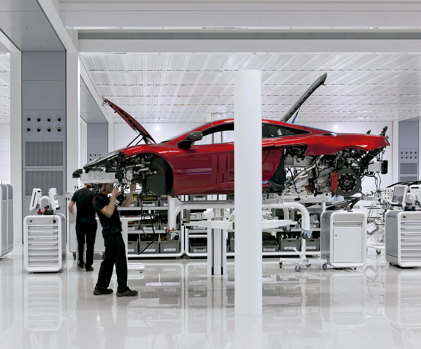 The McLaren Group is a collection of high-tech companies involved in the design and development of Formula One cars, high-performance road cars, electronic systems and composite materials. In Woking, on the outskirts of London, the company has a Technology Centre and a Production Centre, completed in 2004 and 2011 respectively.