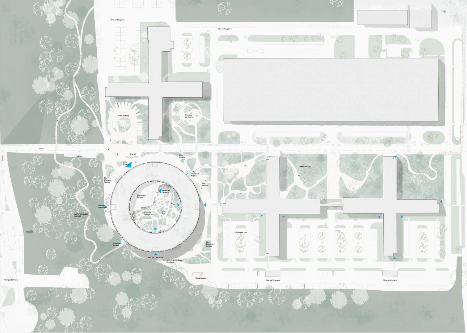 With its circular shape embracing a courtyard-plaza, the wooden volume contains offices, laboratories, and workshops, maintaining a constant connection with the nature around. The design of B777 gives priority to reducing both the embodied and operational carbon footprint, through an assessment of the building’s impact throughout its life cycle. The structural materials are chosen with a view to their eventual reuse or recycling, so are also preferably easy to disassemble. The facade optimizes natural light and views while giving shade to reduce solar radiation, thus minimizing the use of energy for cooling. Completion of construction is programmed for 2027.