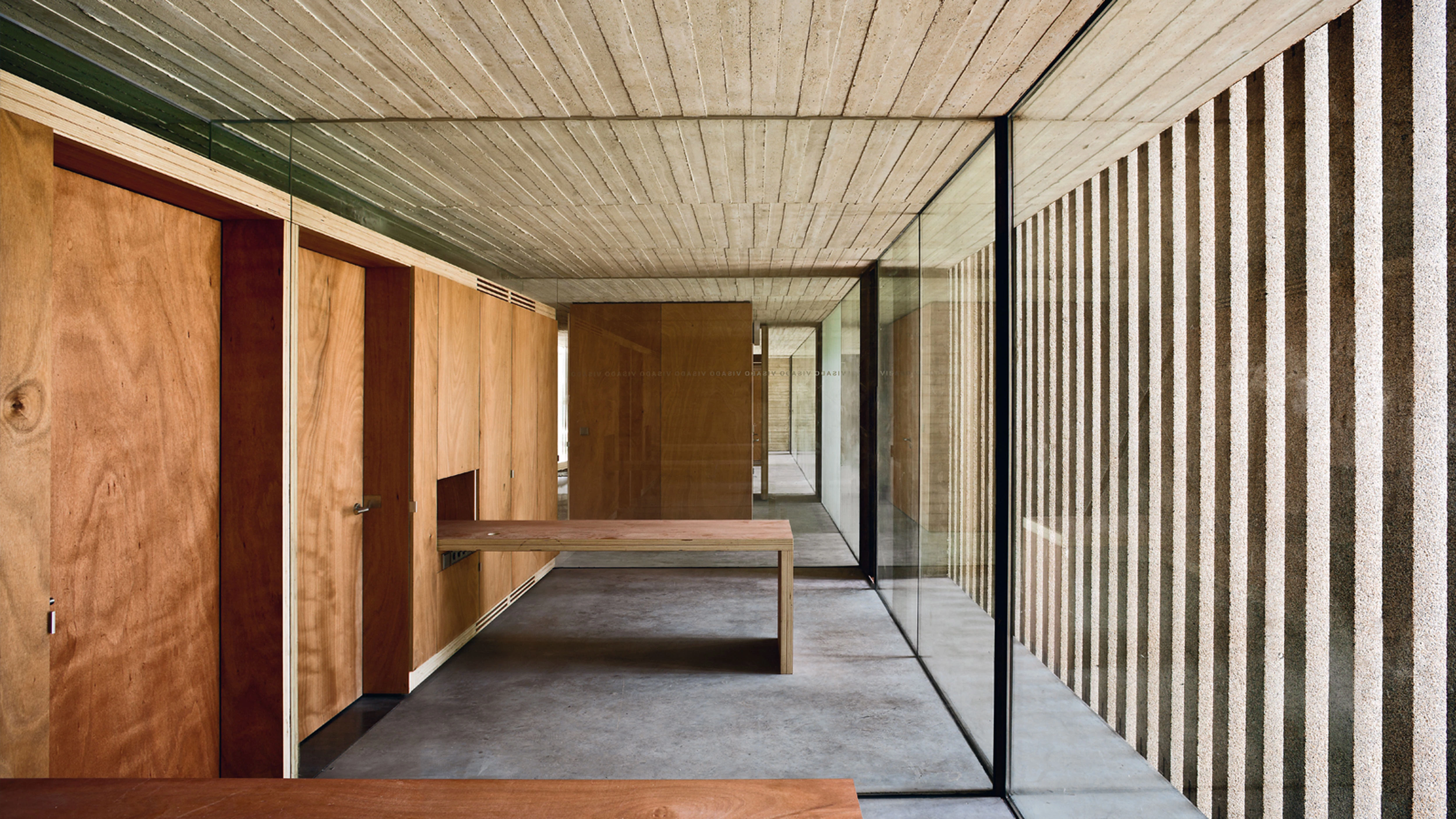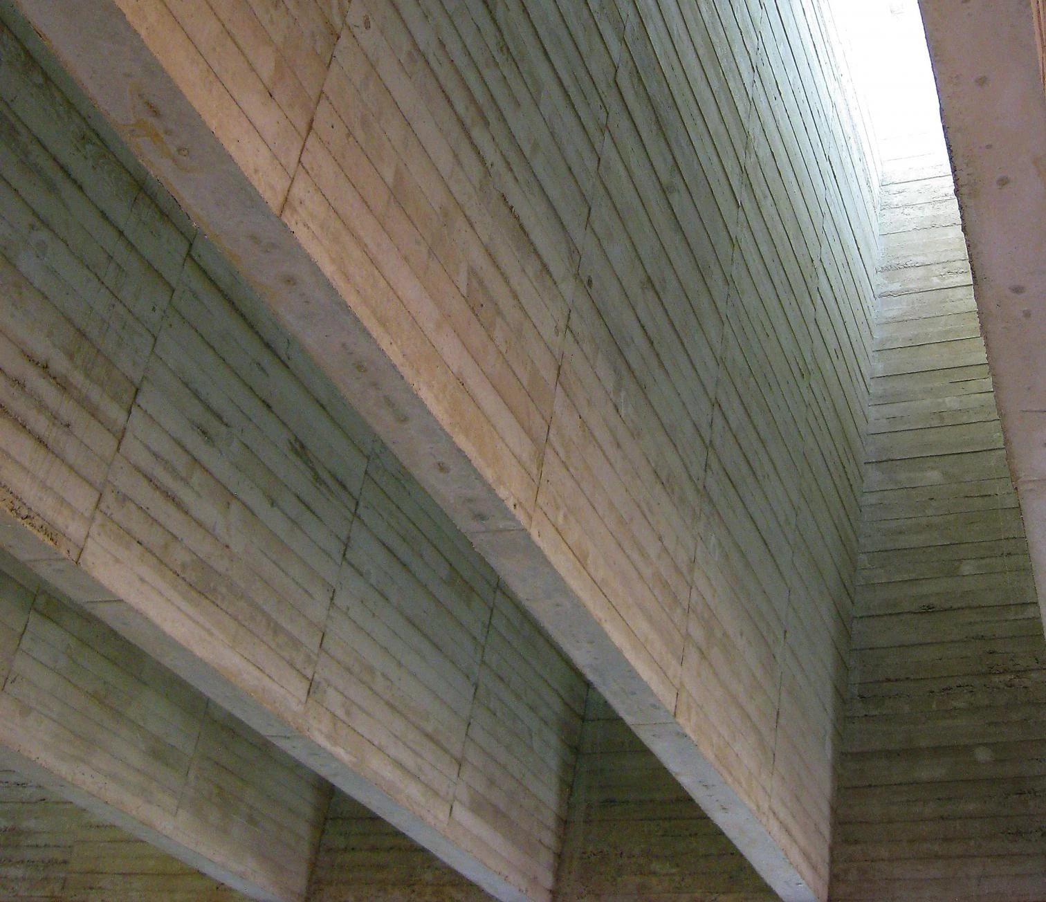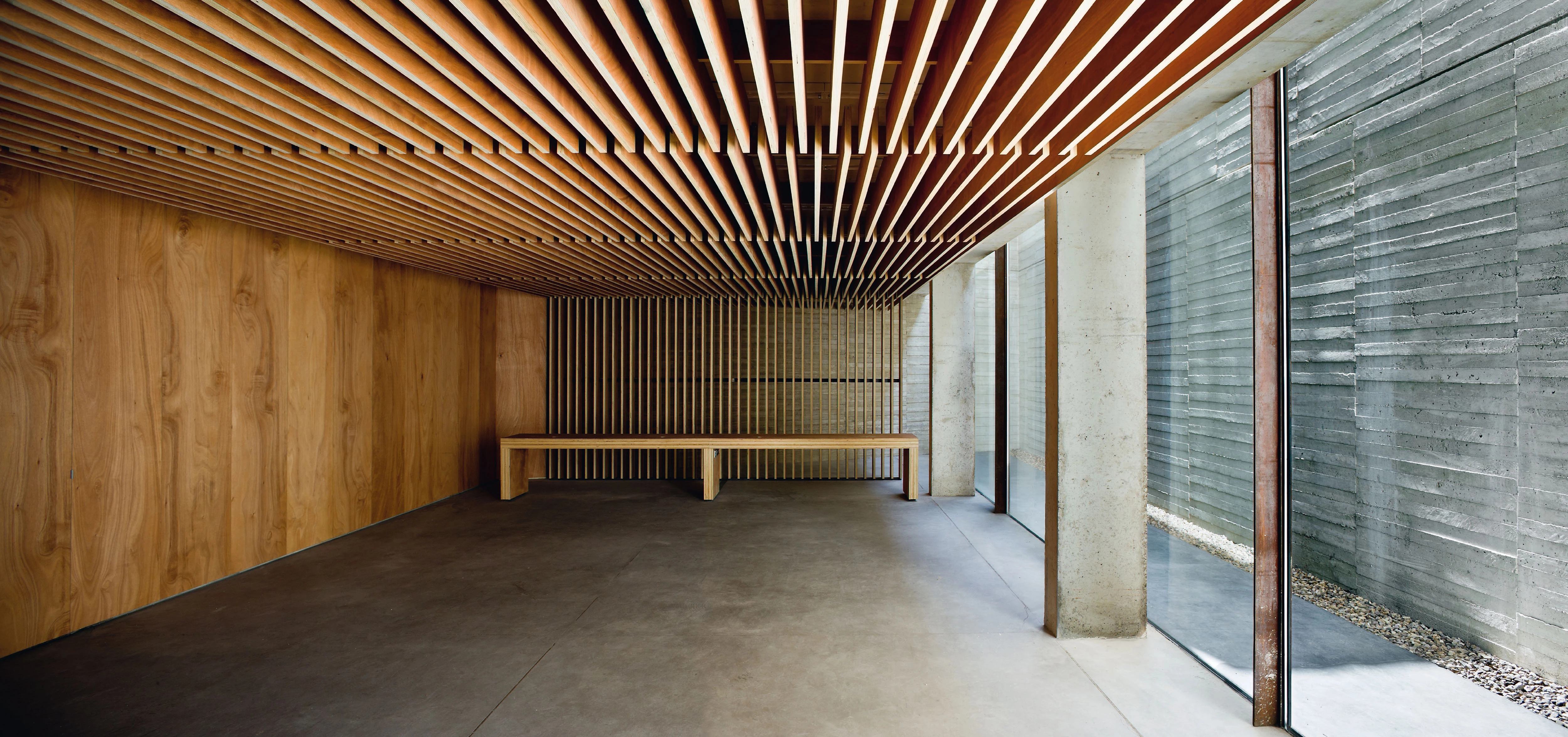 On ground floor, the spaces of the Foundation are formed by three open-plan halls that can be used separately or together. In the central one the skylights are solved with deep V-shaped crossbeams.