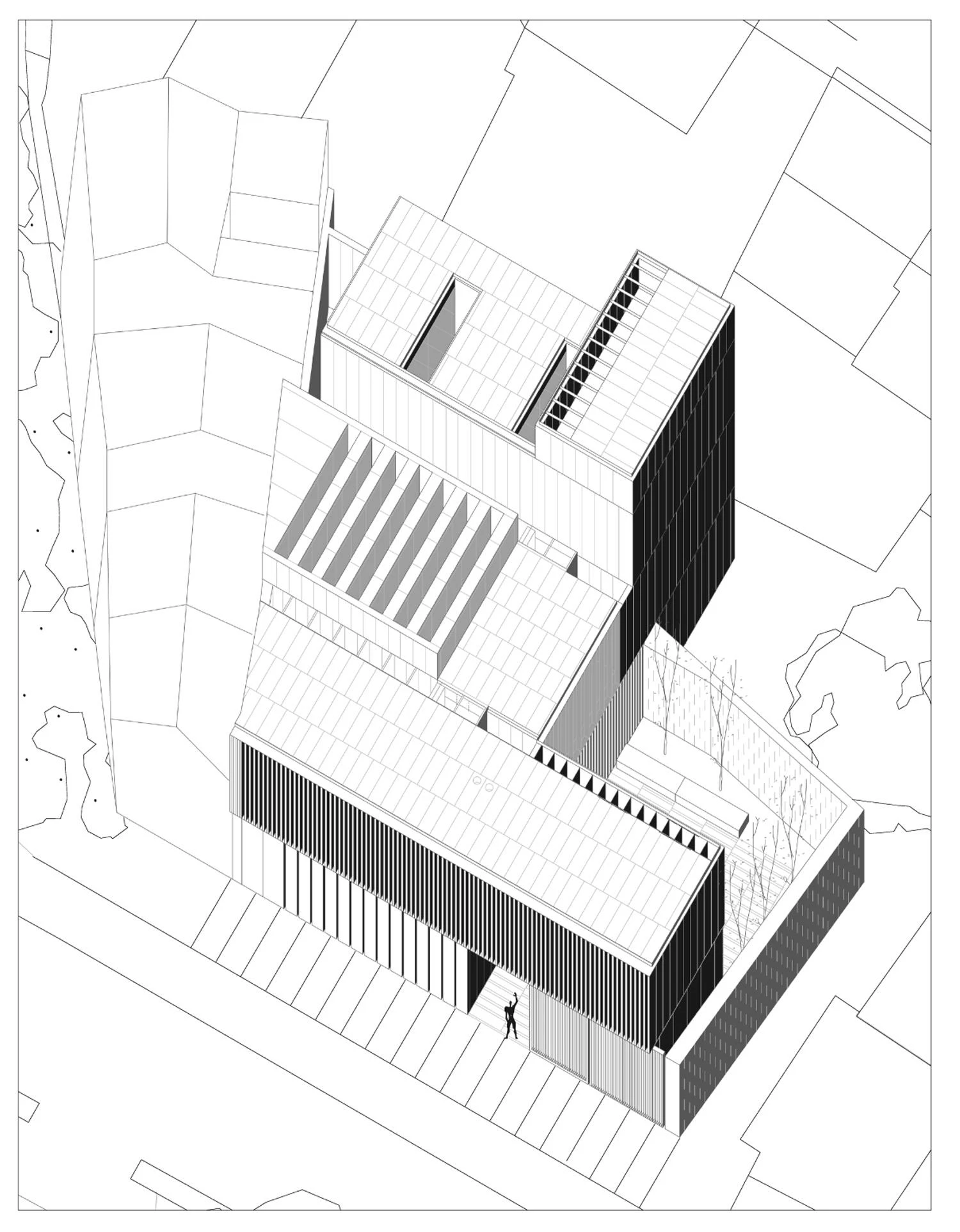 Located close to the convent of San Esteban, the new building houses the headquarters of the Colegio de Arquitectos (Institute of Architects) of León and its cultural foundation. The building offers views of the cathedral, with its imposing dome and spires. The building’s integration strategy was determined not only by the close presence of several historical landmarks of Salamanca, but also by the uneven geometry of the plot and the discovery of Roman and medieval archaeological remains, which demanded certain adjustments.