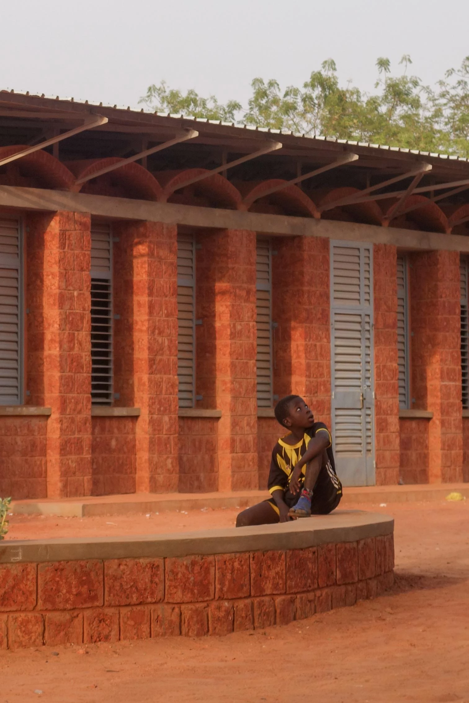 The main construction material is laterite. Cheap, locally available, and with low embodied carbon, it is an underutilized resource in Niger. Laterite provides thermal mass to slow down the release of heat during the day, and is a more breathable material than the cement blocks that are ubiquitous in modern construction in Niamey. This materials is dug by hand from the ground in a quarry 10 kilometers away, and hardens on contact with air. During construction, the local masons were trained in how to use laterite, with the intention that the skills acquired be disseminated in further projects across the region. Article 25 has also initiated an on-site training program for young girls interested in construction.