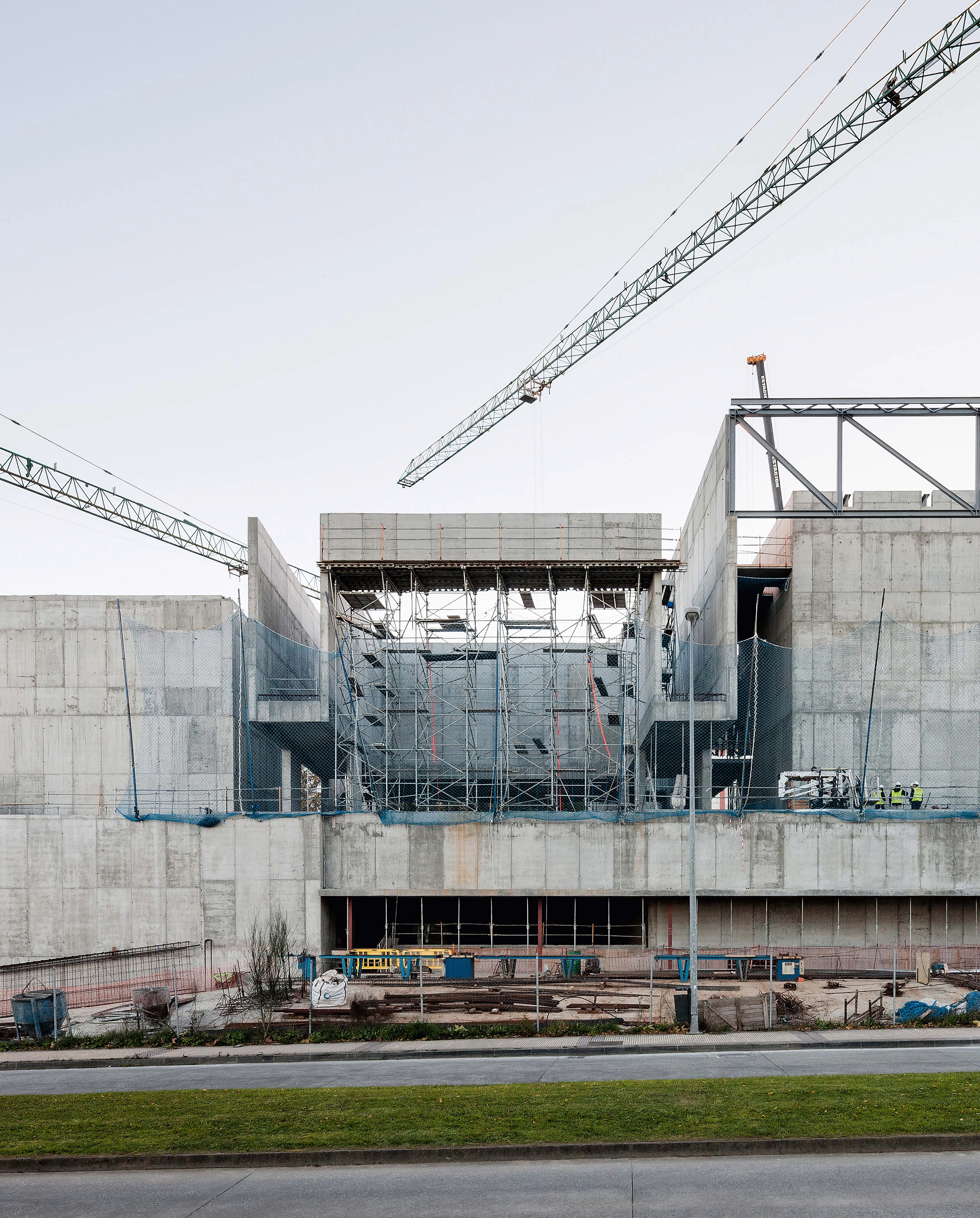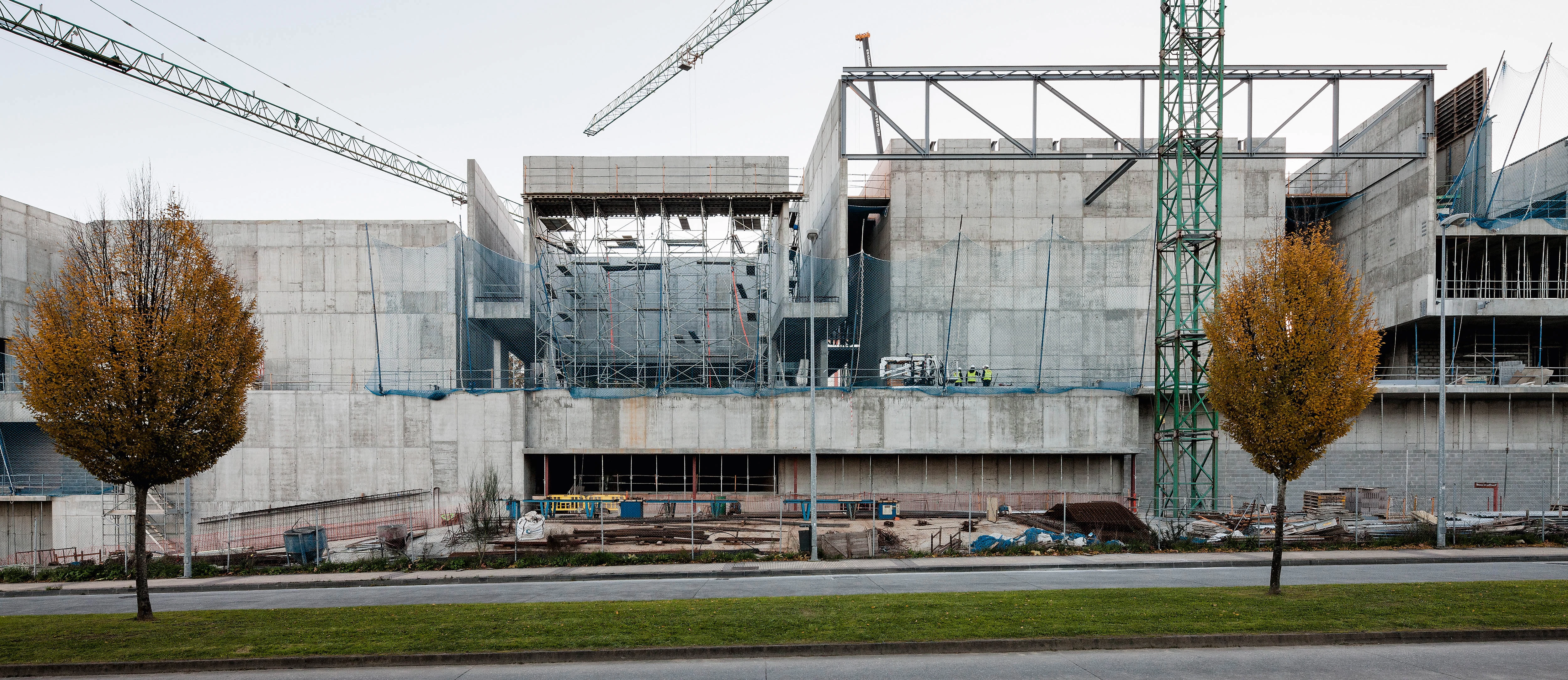 Like the City Wall, the Auditorium of Lugo by Paredes & Pedrosa, under construction since 2011 and now nearing completion, extends linearly and adapts to the topography of the hill into which it is tucked. The metallic roof folds to harbor the communication spaces and also the concert halls, carved into the terrain to minimize the visual impact of the height of the stage box. In this way, the rear facade retraces the landscape, protecting the halls from the noise of the street, to which it offers a facade of double silkscreen-printed glass with different degrees of opacity, sometimes translucid and others transparent, representing in this way an institution that is open to citizens.