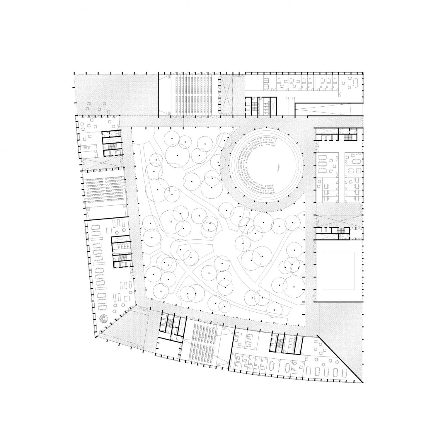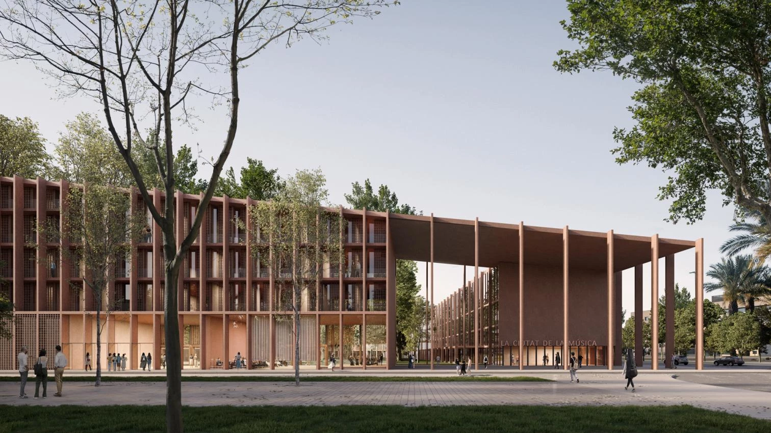 Vaillo + Irigaray and BAAS Arquitectura have together won the restricted competition to build a higher conservatory of music and dance in Castellón de la Plana. The ‘campus’ embraces a large open inner space. This garden is intended as a place for interaction between students and will serve as a venue for different open-air activities. It diagonally connects two boulevards, Blasco Ibáñez and Karl Raimund Popper, establishing a continuous pedestrian route that passes by the Auditorium, the Congress Hall, and the surrounding park. The circular outdoor auditorium is situated at one of the corners of the patio.