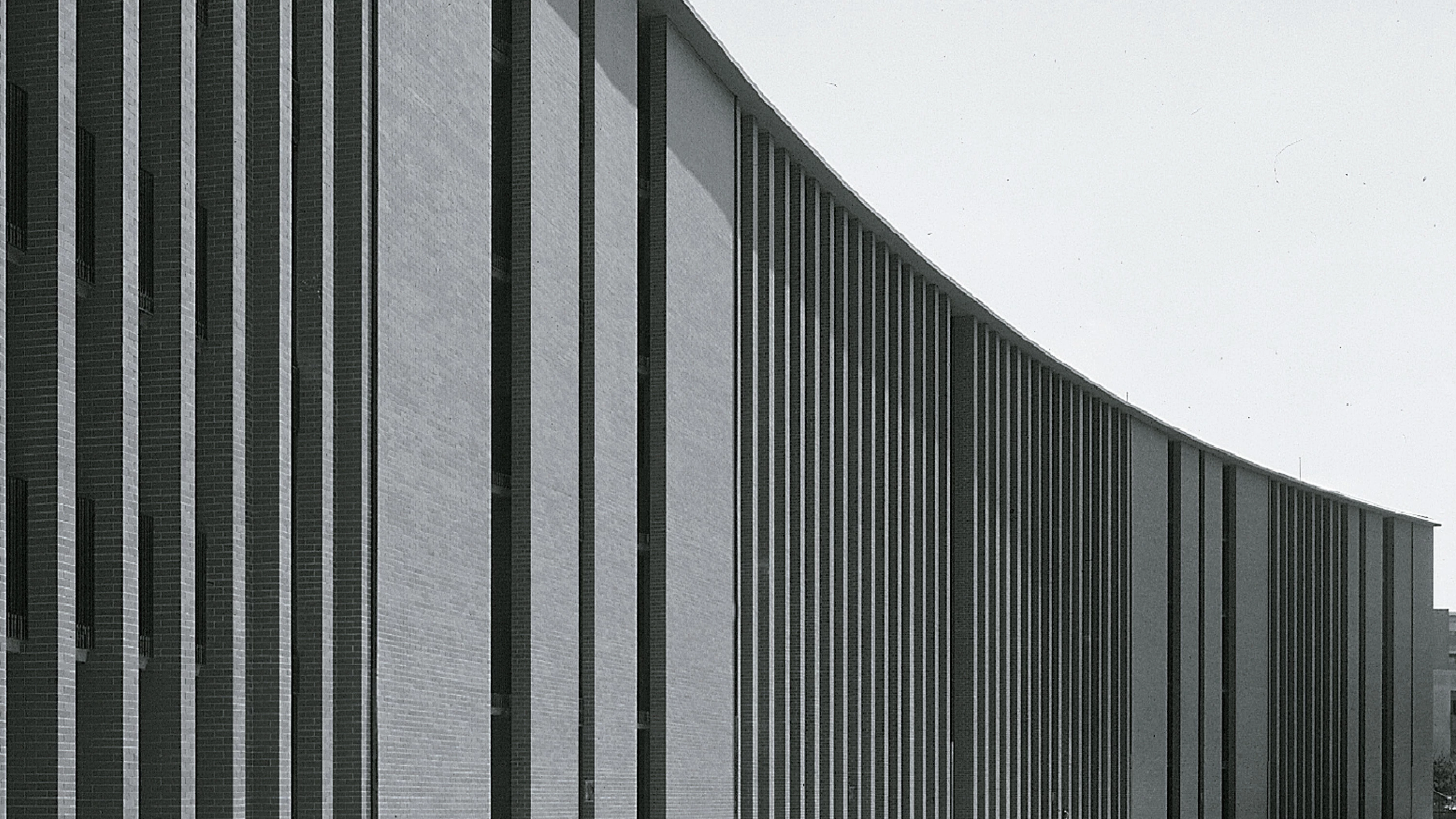 The location of this residential block in the outskirts of Pontedera – on the banks of the Arno, halfway between Florence and Pisa – warranted the categorical form with which it defines its urban environs. Separated from the town center by a tributary of the river, the new construction absorbs with its curve the east-west axis of the city, the only structure-creating element of a district that has emerged where the regular scheme of the center fragments into loose construction clusters. The building crosses the axis like a gate to the landscape, opening in the middle with a narrow opening through which one can only discern the uncertain limit between countryside and city.