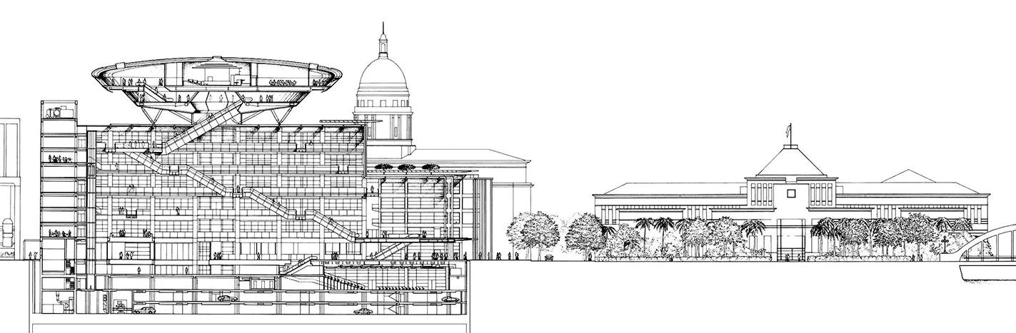 Located within a historic civic district, on the north bank of the Singapore River and close to the Padang, the new Supreme Court takes its cue from the scale and fabric of the neighbouring civic buildings, and literally locks itself into the heart of city. Offering a modern re-interpretation of Singapore’s vernacular architecture, the building conveys an image of dignity, transparency and openness. With a viewing space at the top, a new public room is created that will become a new exponent within the city. The building is designed for long-term flexibility, including future increases in the number and size of the courtrooms and advances in electronic information systems.