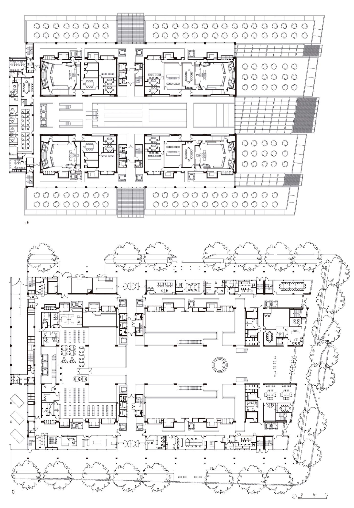 The layout of the spaces reflects the hierarchy of the judicial system. The civil courts are located within a sequence of blocks on the lower floors, with the criminal courts above. The court of appeal, the highest court, is raised symbolically in a disc-like form at the top of the building in a contemporary iteration of the old courthouse’s dome. Like the Reichstag’s cupola, it incorporates a public platform that offers a panoramic view across the city.