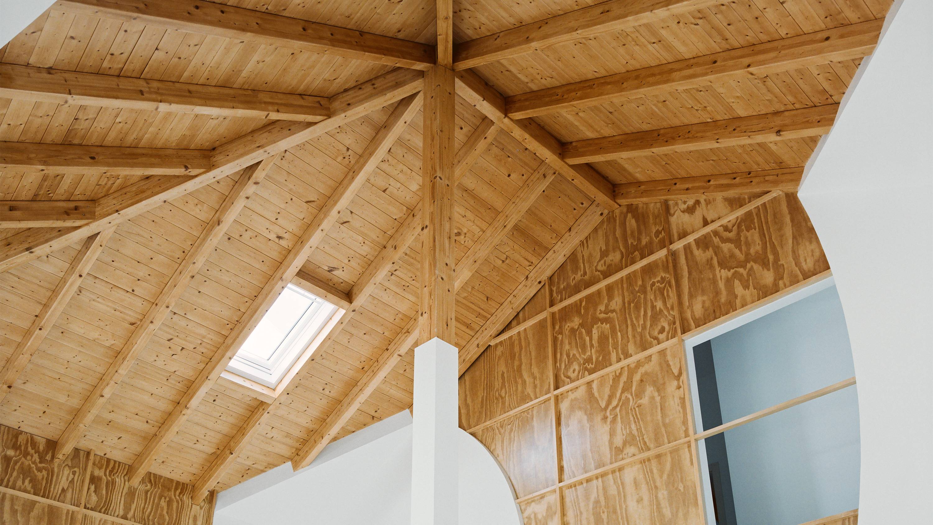 The intervention maintains almost everything as it was, adding only a false pillar that gives rise to a series of geometric dynamics with the effect of cropping the wooden walls and ceilings...[+]