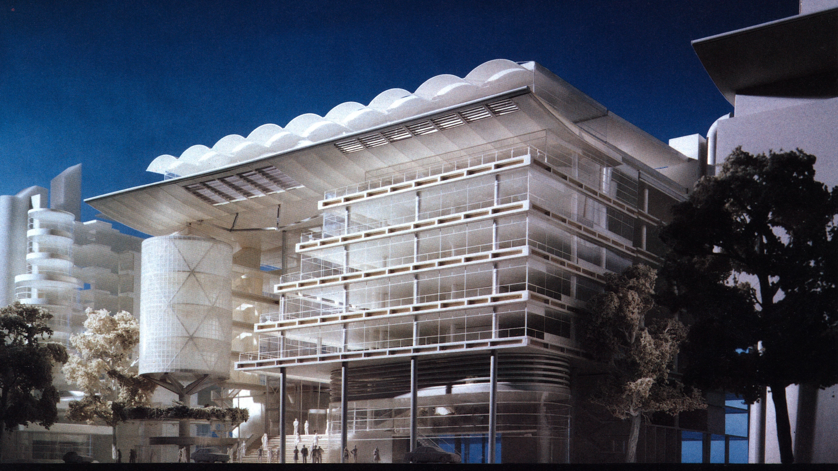 Although the program for block B8 is exclusively for housing and the other two house only offices, the volumetry is practically the same for all of them: a U-shaped rear body and a set of staggered and cylindrical volumes, in which transparency dominates, half closing the fourth side. Large staircases allow access to the landscaped inner courtyards and a sort of large canopy covers this outer body, somehow restoring the initial image of the closed blocks. The last block of the row, B4, is connected by its lateral façade to the small block B2, developed by Piano, and separated from building B1, also by the Italian architect, by a small square open to the street...[+]