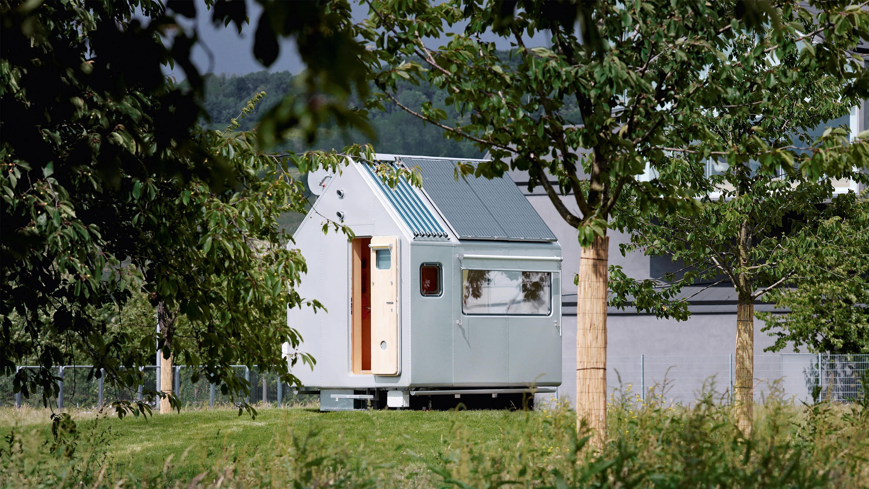 With its 2.5 x 3 meters on plan and its little over 3 meters in height, weighing a ton, Diogene is a place one can withdraw to that is equipped with everything truly necessary for living. It is built with a wooden structure clad in aluminum and can be easily transported by truck to any place desired. Its apparent simplicity – that of a basic hut with a pitched roof – is deceiving; the skin and innards of this built organism incorporate an intricate mesh of technical systems, from photovoltaic cells and thermosolar panels to triple-glass insulation, not to mention a water well, networks of natural ventilation and even an ecological toilet. The interior of the module addresses a minimal program: a living room that can be converted into a bedroom towards the front, and a utilities core complete with a kitchen and bath at the rear.