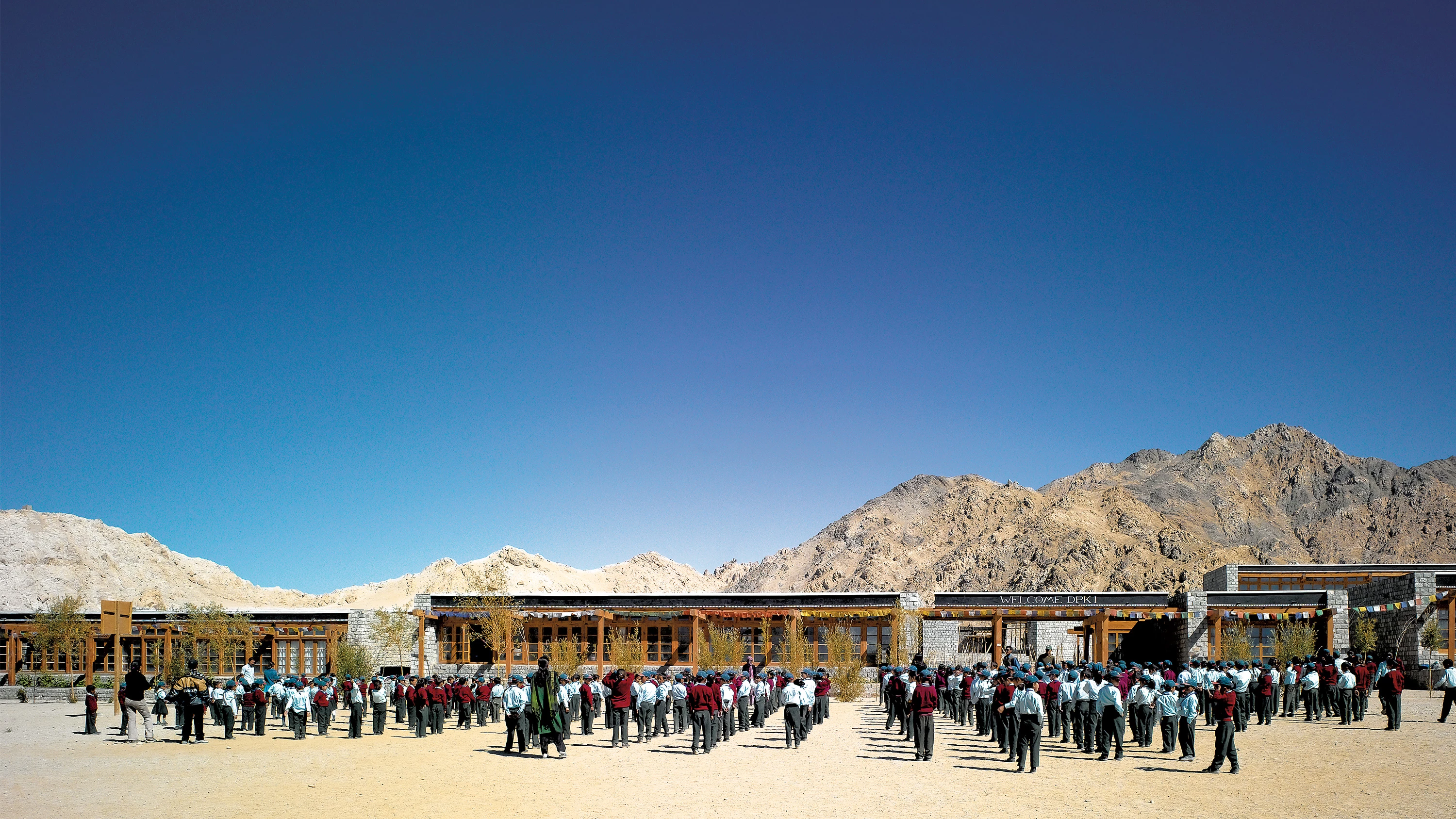 In the ancient kingdom of Ladakh, in the northwestern part of the country, the town of Shey spreads out at an altitude of 3,500 meters and is home to one of few communities that still go by traditional Buddhist beliefs. Through Drukpa, a British foundation, the idea of building a modern learning center for children of very remote village was materialized in this school complex for 850 pupils between the ages of four and eighteen.