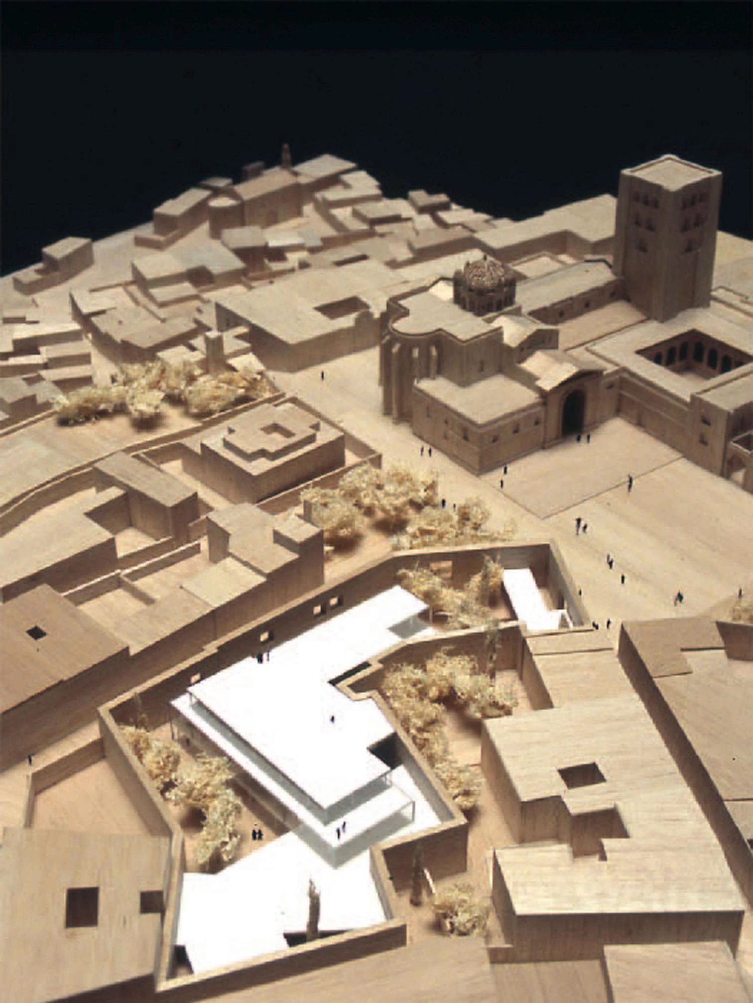 A plot across from the Romanesque Cathedral of Zamora was the place chosen for the construction of the headquarters of the Advisory Board of the regional government of Castilla y León. The competition held produced a winning proposal that stems from a reflection upon building in historic centers. The scheme is radical in approach: a stone wall pierced by just a few openings surrounds a garden where a light glass box rests. The wall is wrapped around the whole plot following the contours of the kitchen garden of the old convent, and goes up as high as the building. The color of the stones used to build this wall matches exactly that of the cathedral and the historic city fabric, and its detailing and width is also similar to that of the cathedral’s stone. The few openings have been distributed strategically to offer views of the garden.